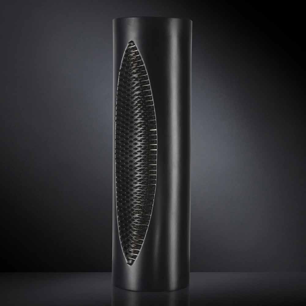 Vaso decorativo alto em cerâmica preta fosca, feito à mão na Itália.
