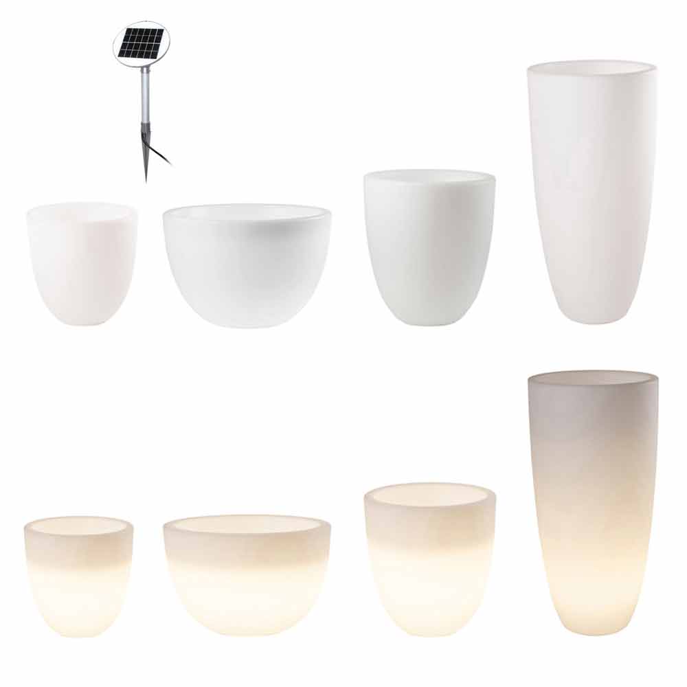 Vaso luminoso de design moderno e versátil para interior ou exterior com led ou solar em vários tamanhos.