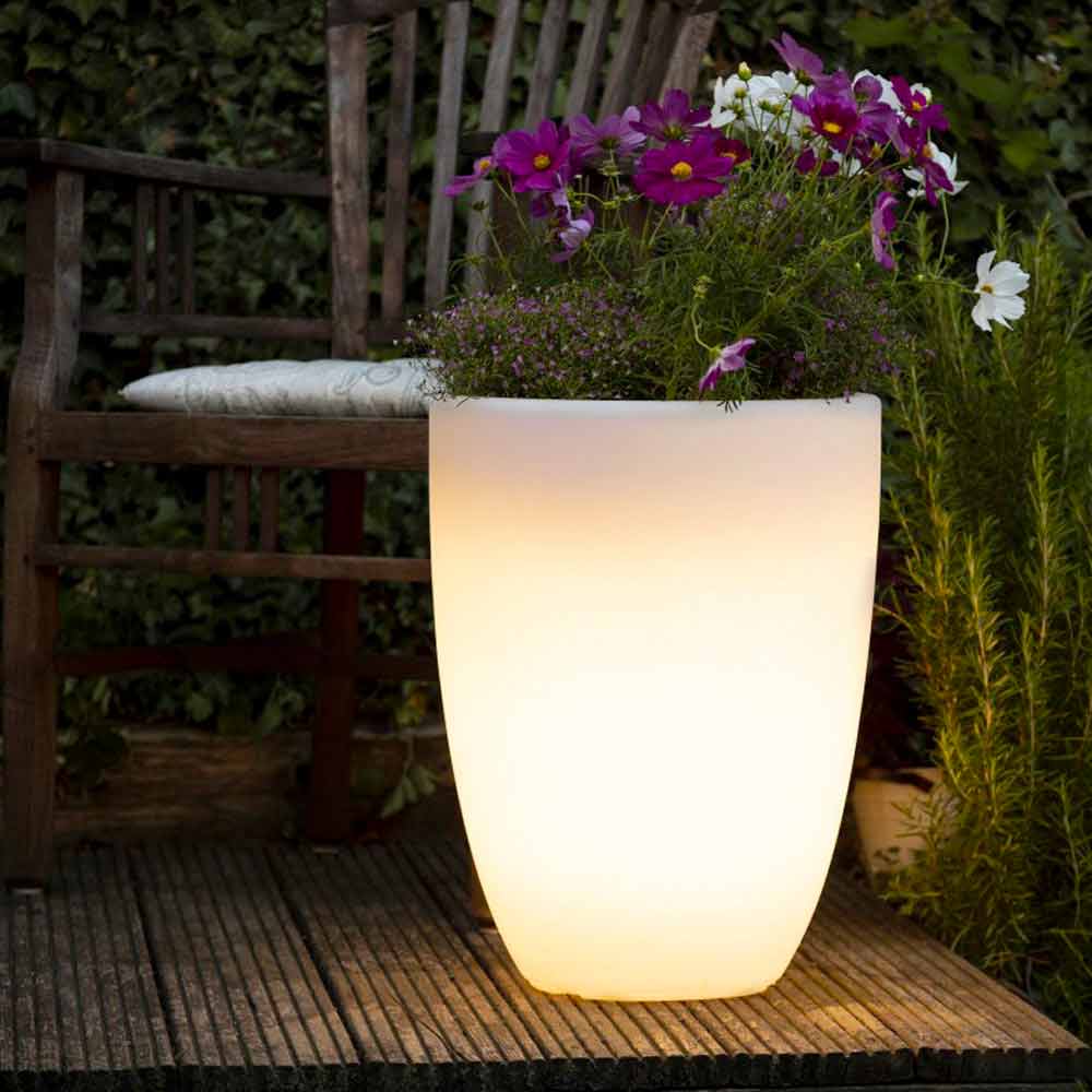 vaso luminoso disponível em diferentes tamanhos e cores ajuda a criar um