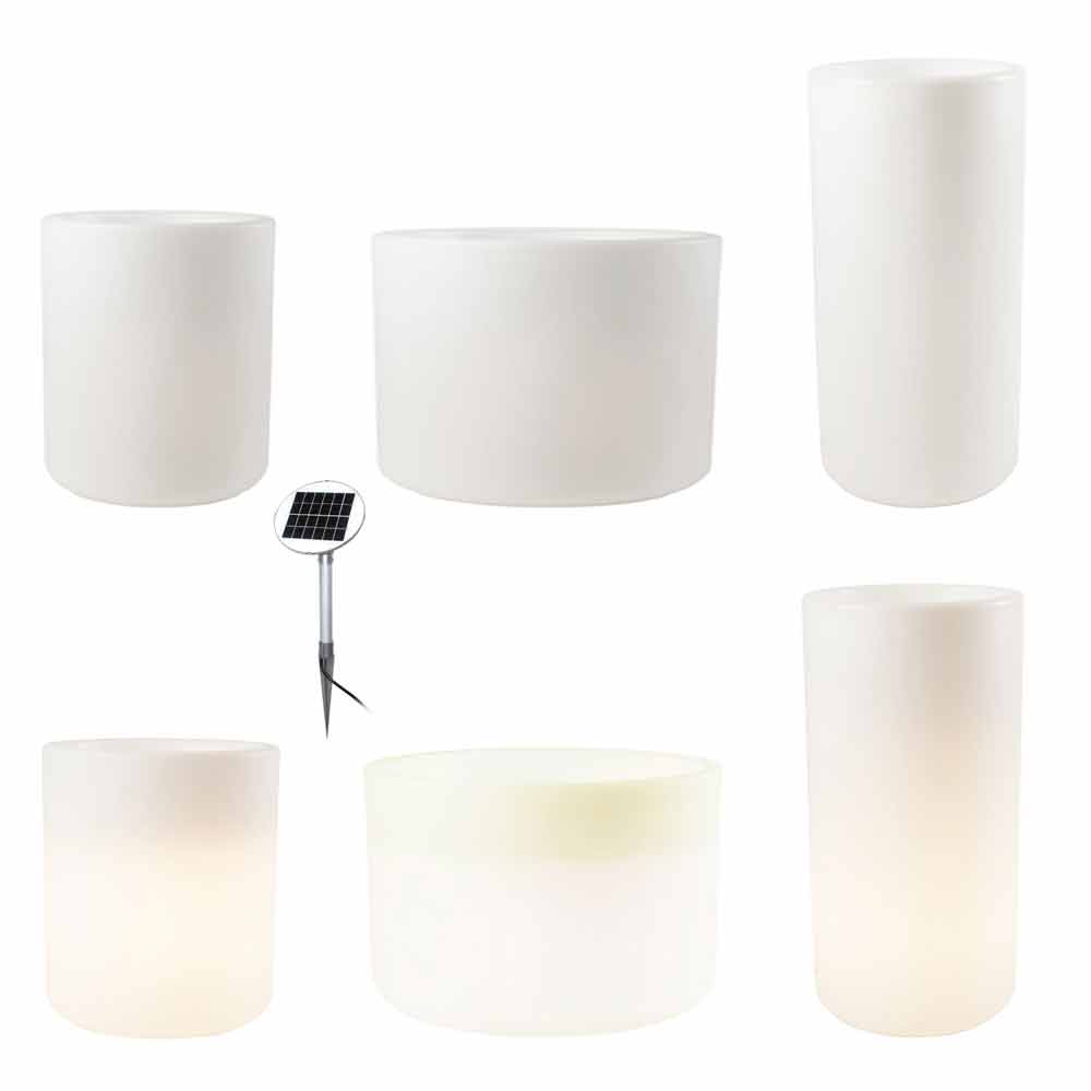 Vaso luminoso de design moderno e versátil com led ou solar em vários tamanhos para interior ou exterior.