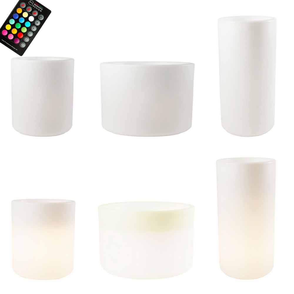vaso luminoso disponível em diferentes tamanhos e cores ajuda a criar um
