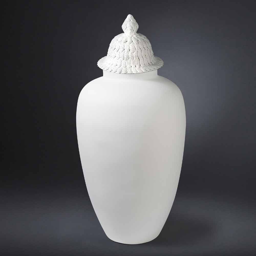 Vaso decorativo alto em cerâmica branca artesanal na Itália, de alta qualidade.