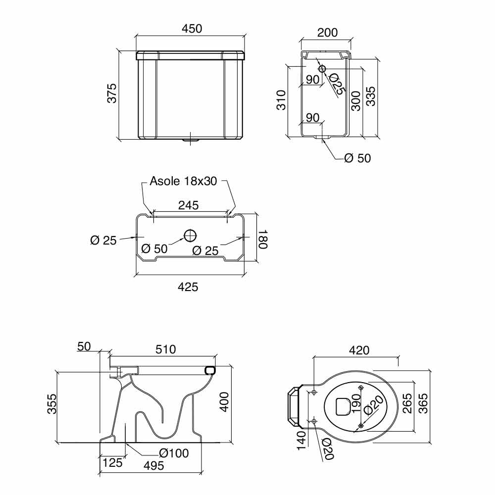 Suportes decorativos, bateria fraca para caixa e tubo externo de latão não incluído no preço. Também disponível na versão cerâmica preta e com outros tipos de assento. Para informações e / ou cotações, entre em contato conosco usando o formulário "