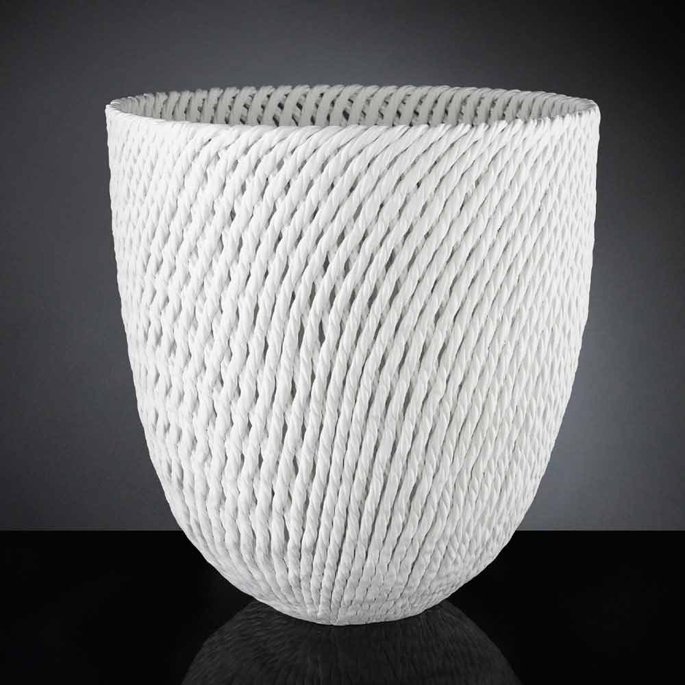 Vaso decorativo para interiores em cerâmica branca opaca feita à mão através de uma produção 100% Made in Italy . Um acessório elegante caracterizado pela textura tecida particular que lembra um cesto de vime, sublinhando o valor do trabalho artesanal marcado pela precisão, paixão e amor pela tradição. O resultado é uma ideia de mobiliário exclusivo ideal para enriquecer grandes mesas de jantar, entradas, quartos ou qualquer outro espaço onde se pretenda completar a estética com personalidade e requinte . Um estilo ideal para os mais variados ambientes, desde artigos de decoração até hotéis, restaurantes, áreas comerciais, spas mas também como cenário para eventos e casamentos.