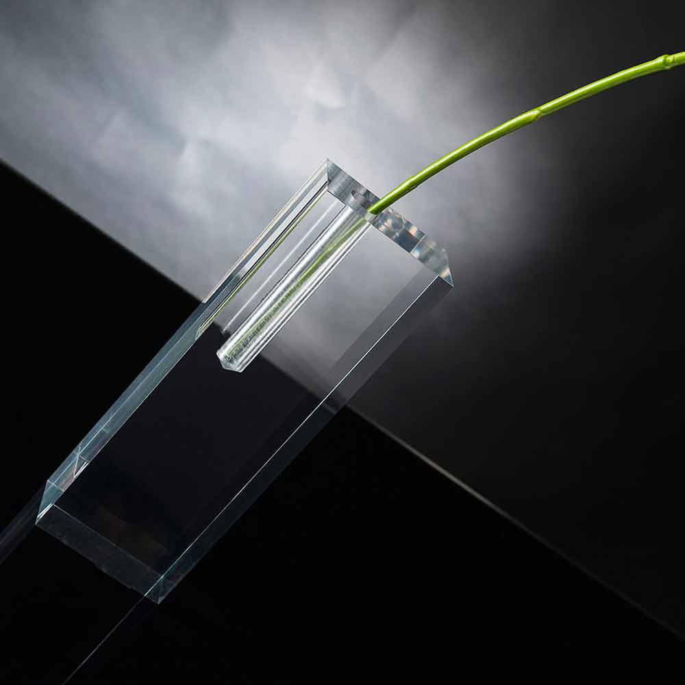 Vaso decorativo para interiores em plexiglass transparente Made in Italy.