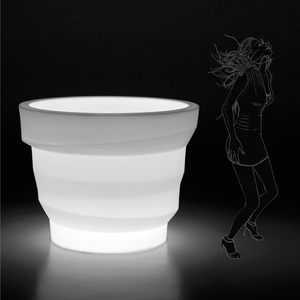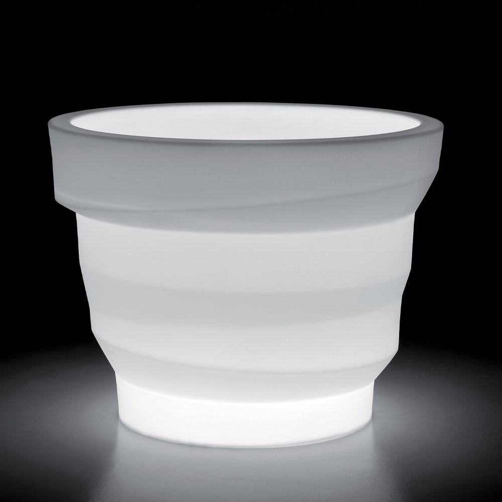 Vaso luminoso de exterior em polietileno opaco com LED made in Italy.
