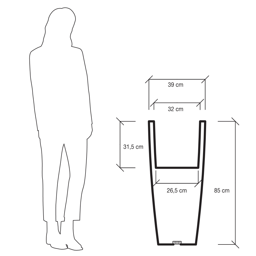 Dimensões: L 39 x P 39 x A 85cm.