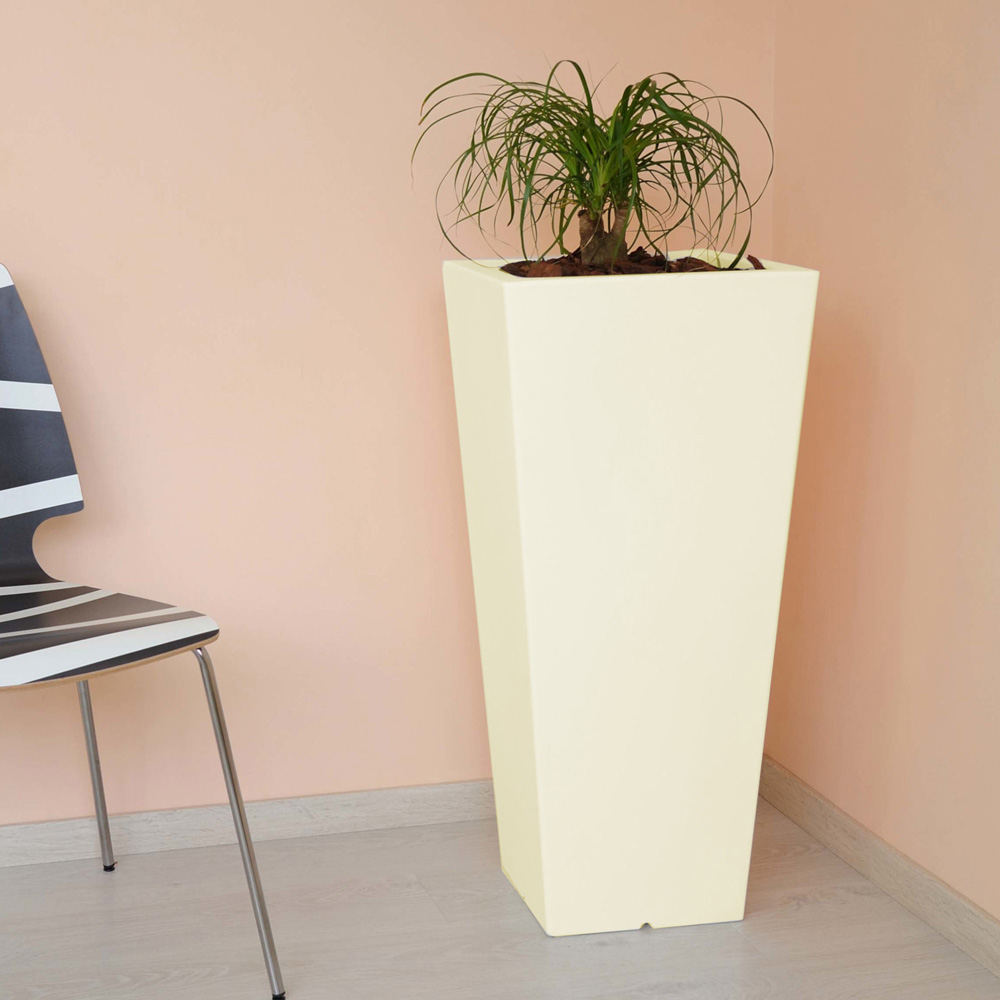 Vaso alto de formato quadrado, elegante e cheio de estilo adequado para qualquer jardim. Feito de polietileno, é