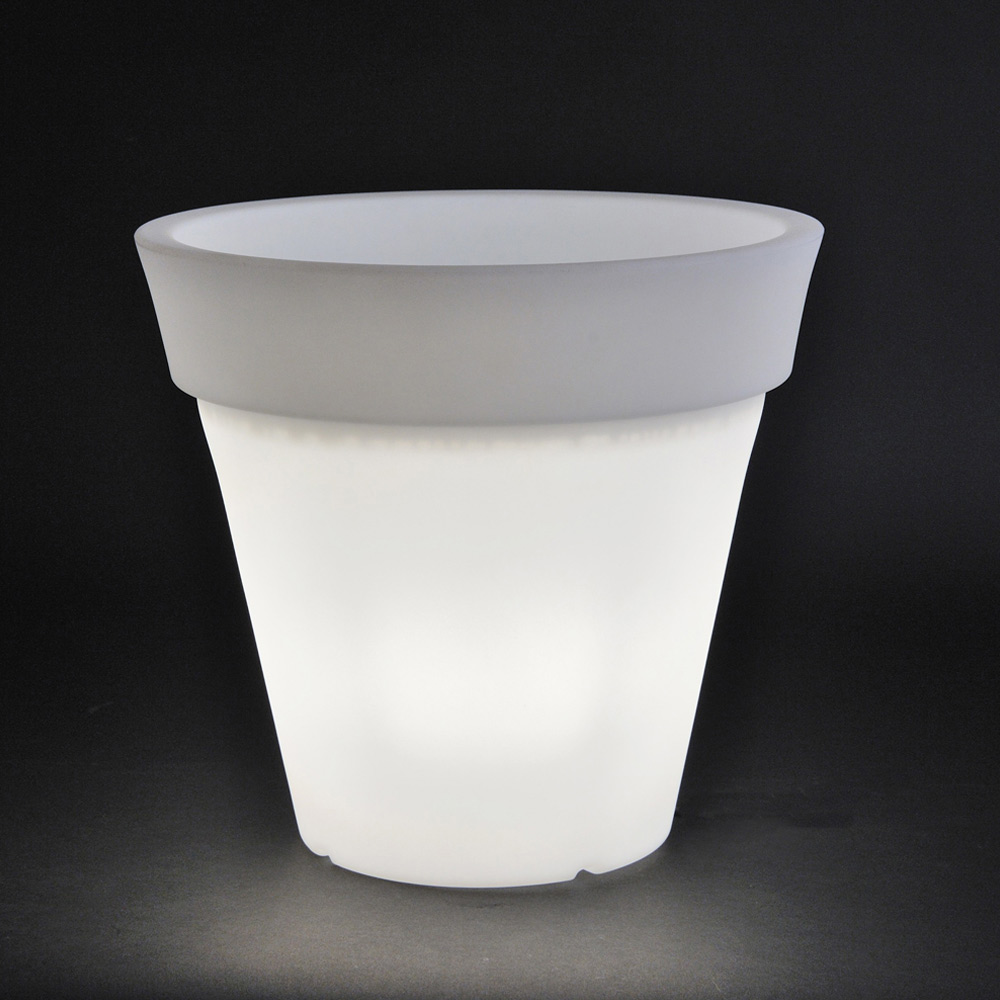 Obs. Na versão branco pérola com luz, o vaso iluminado é enviado com o kit de iluminação já montado: cabo preto de 2,5 metros para uso interno e externo, casquilho com soquete E27.