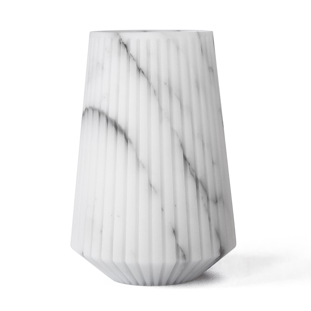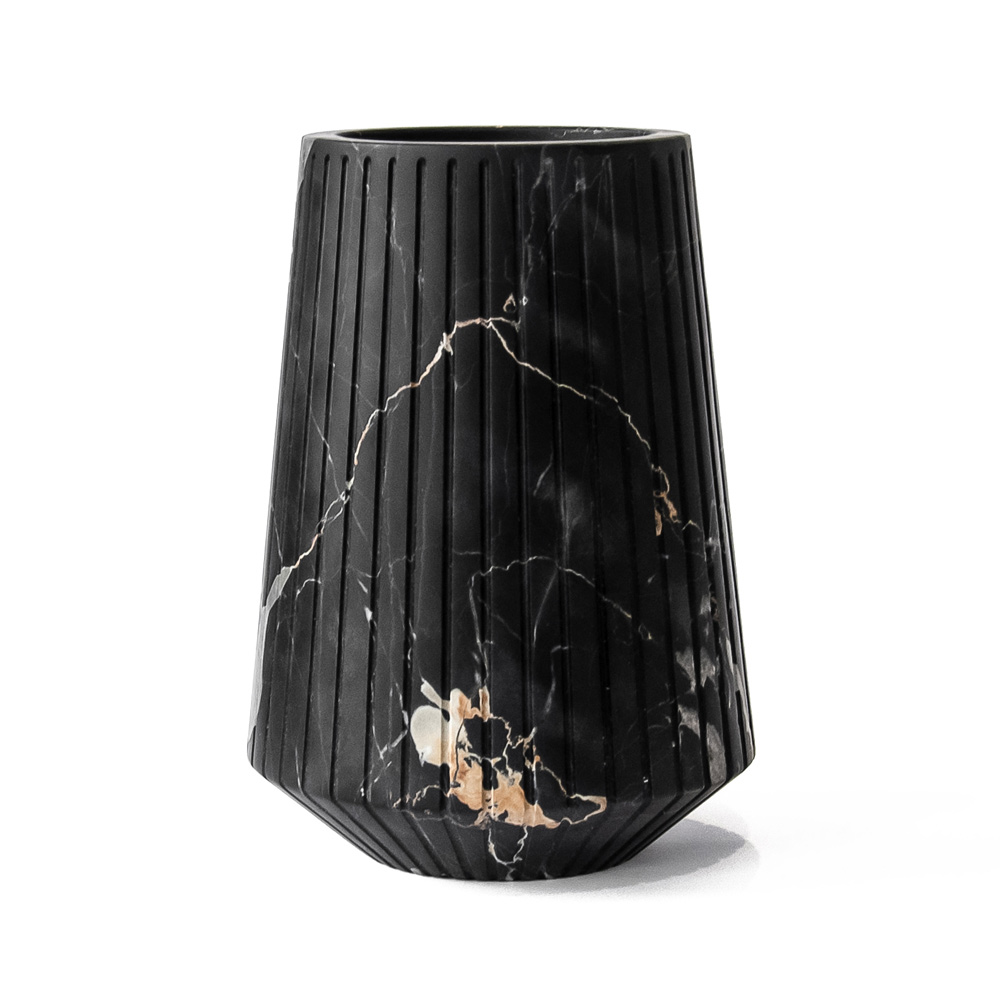 Vaso decorativo médio em mármore listrado branco ou preto fabricado na Itália.