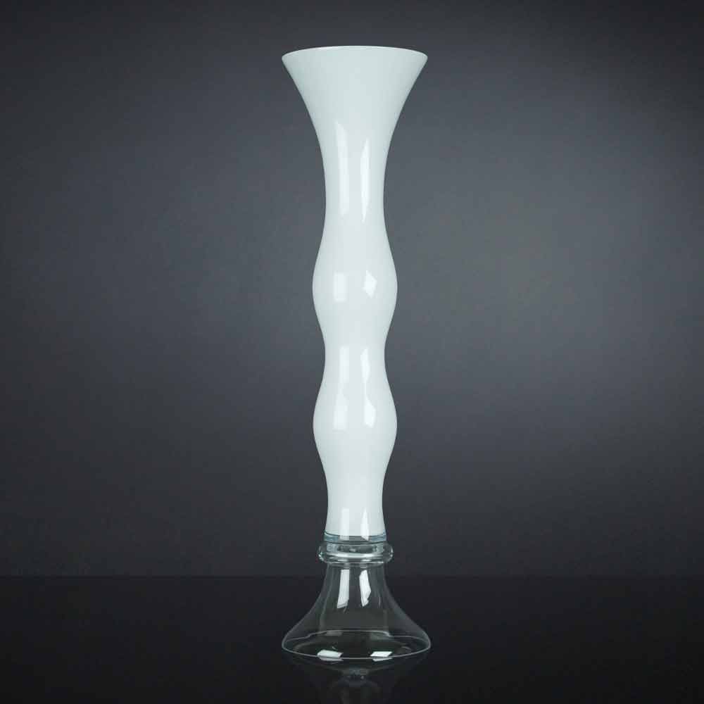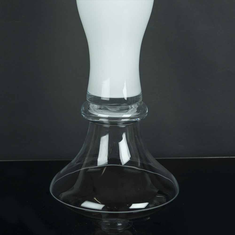 Vaso alto para interiores em vidro branco com base transparente Made in Italy.
