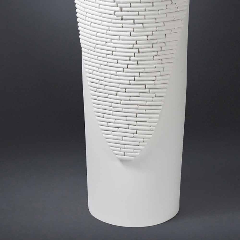 Vaso decorativo alto em cerâmica branca fosca, feito à mão na Itália.