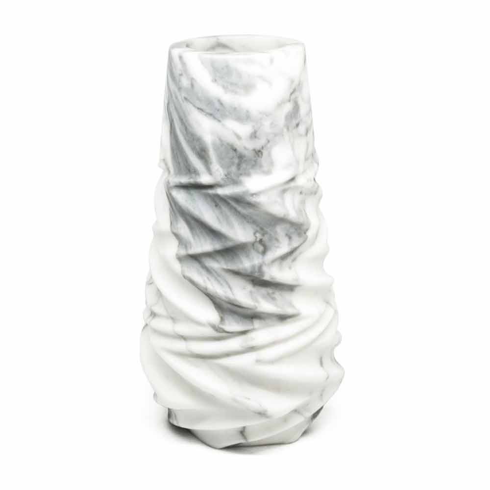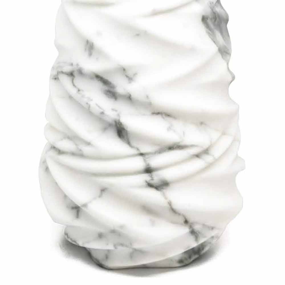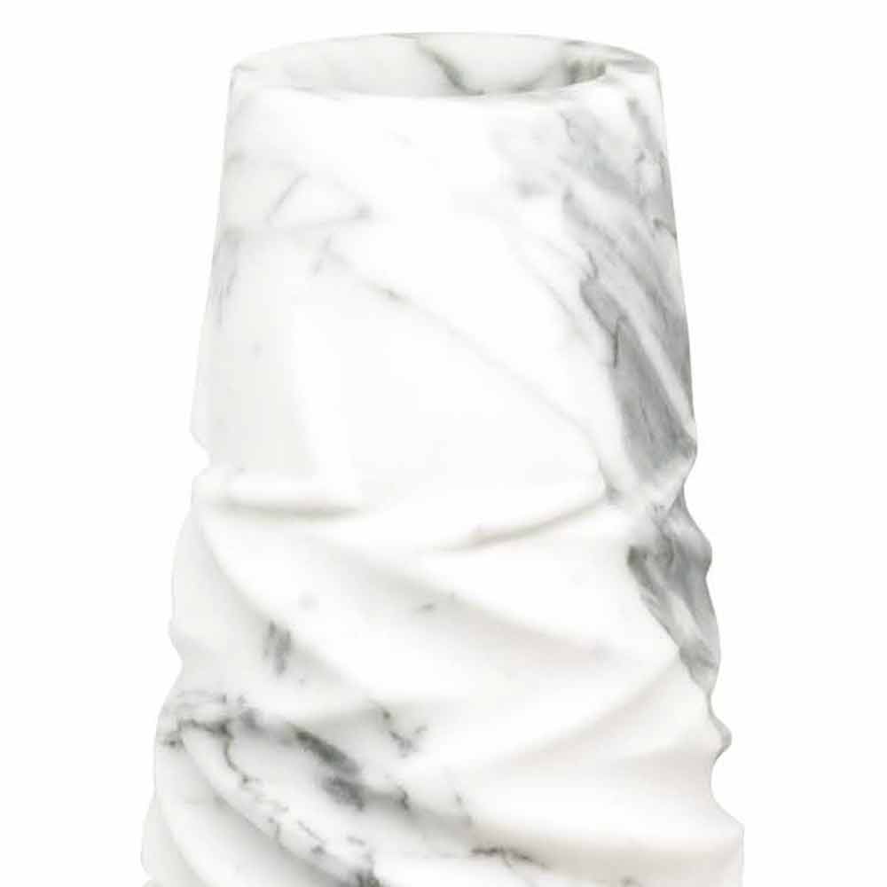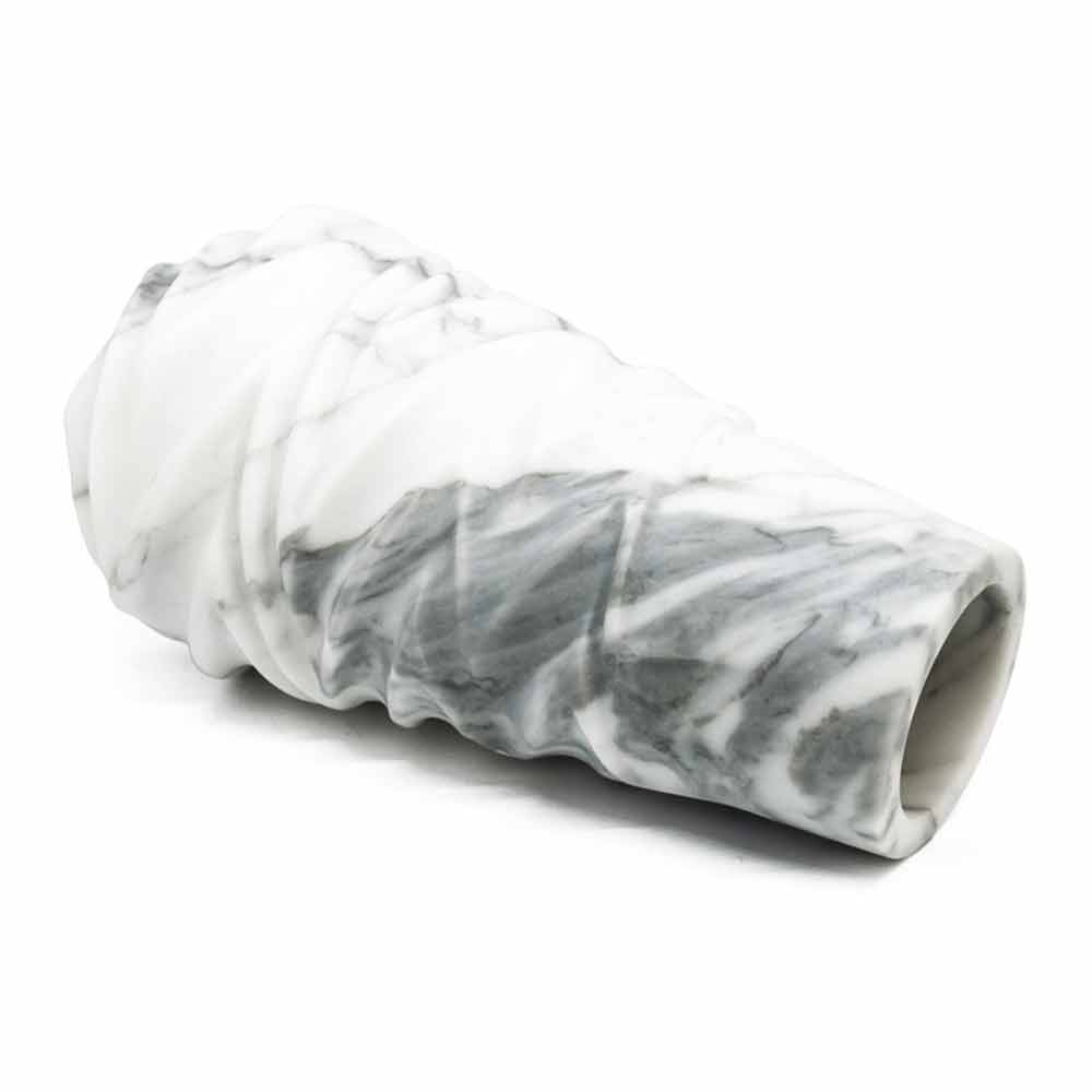 Vaso decorativo feito inteiramente de mármore arabesco, que é uma variedade de mármore branco fino com veios cinza escuro, denominado "arabescos".