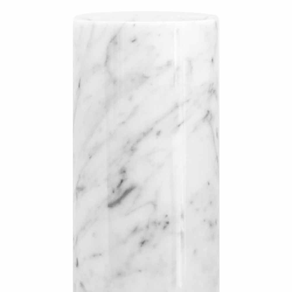 Vaso decorativo que se caracteriza pelo material de alta qualidade utilizado para sua realização, o mármore branco de Carrara . É uma peça única, pois cada bloco de mármore é diferente em veios e tonalidades.