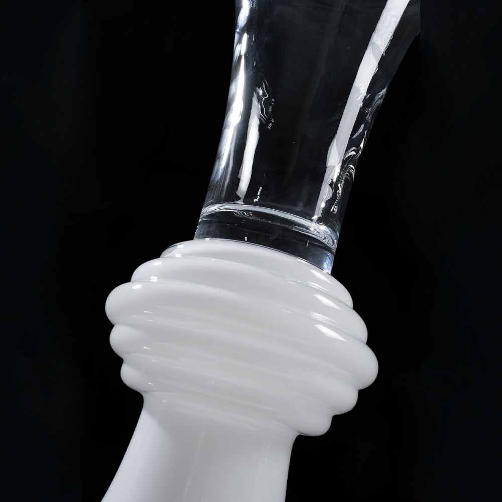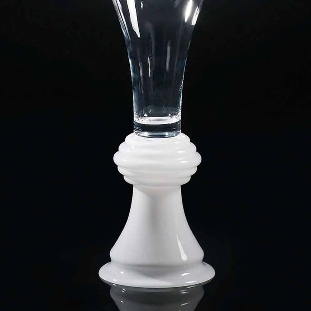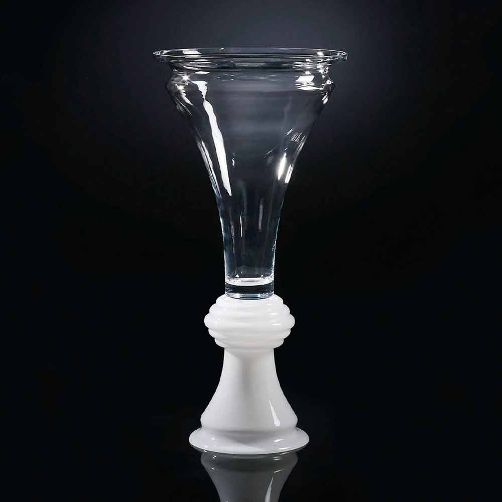 Vaso decorativo para interior em vidro branco e transparente fabricado na Itália.