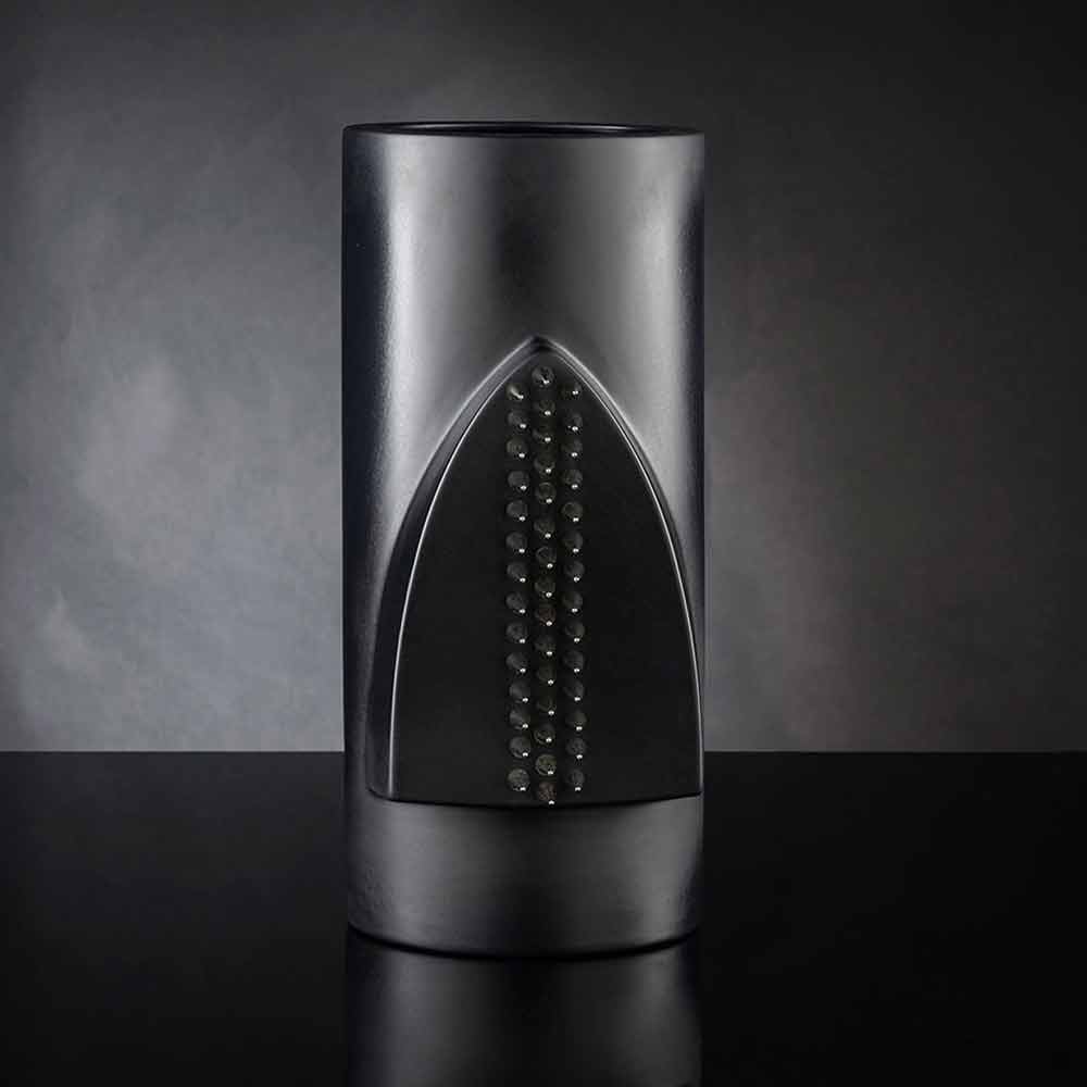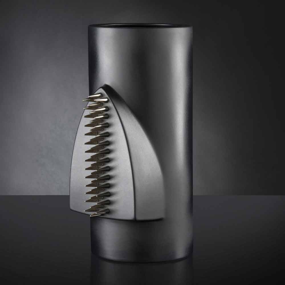Vaso ornamental interno em cerâmica preta fosca enriquecido com pregos de aço, feito através de um artesanato Made in Italy . Do encontro entre a extrema elegância da cerâmica e o toque moderno dos detalhes metálicos, nasce um elemento decorativo para ambientes modernos, cheio de personalidade e carácter, ideal para quem adora decorar os seus espaços com acessórios de forte impacto cenográfico que podem ajudam a completar o visual da sala criando uma harmonia perfeita. A produção artesanal representa um de seus pontos fortes, pois valoriza e valoriza a qualidade do produto, dando vida a um resultado exclusivo e requintado . Um estilo ideal para os mais variados ambientes, desde artigos de decoração até hotéis, restaurantes, áreas comerciais, spas mas também como cenário para eventos e casamentos.