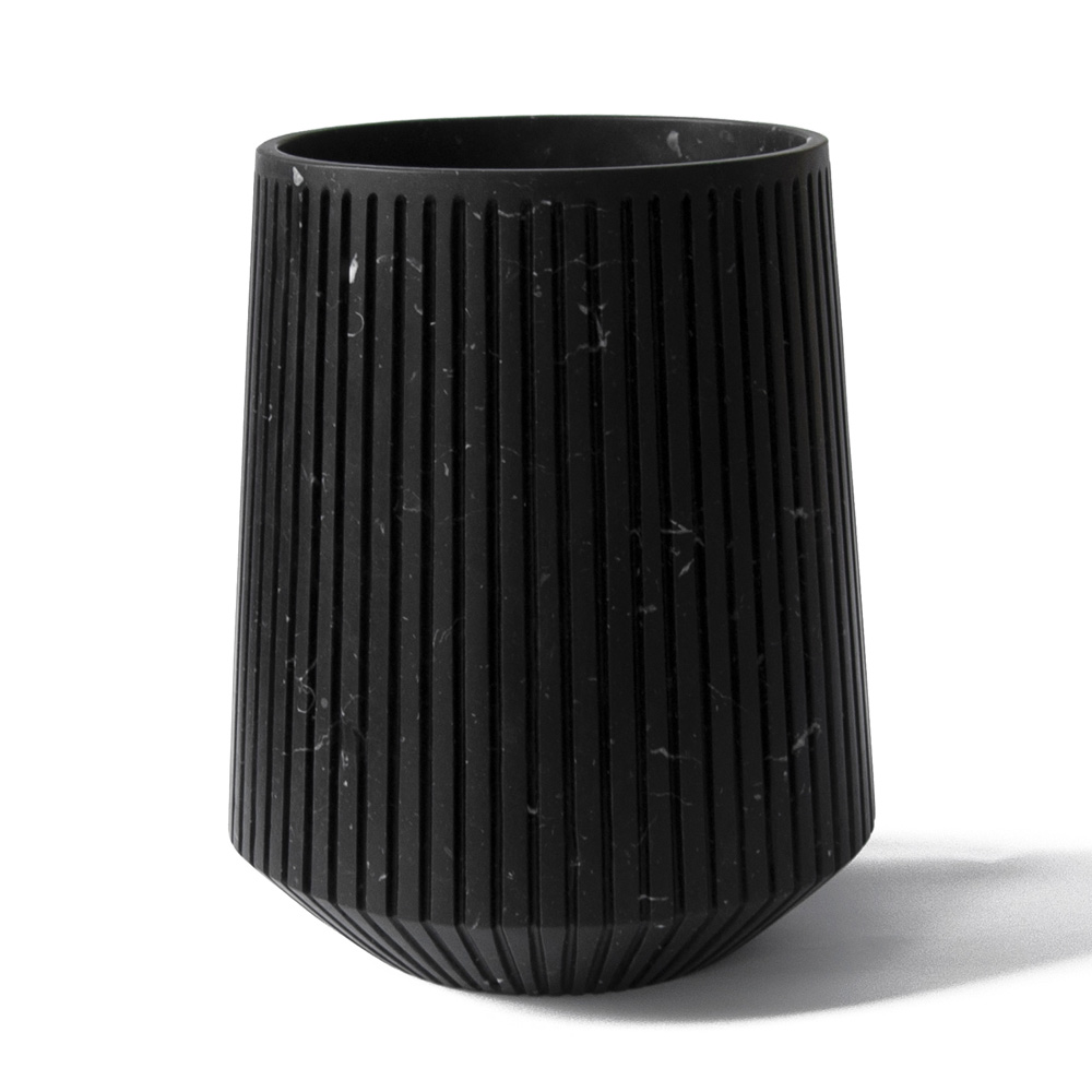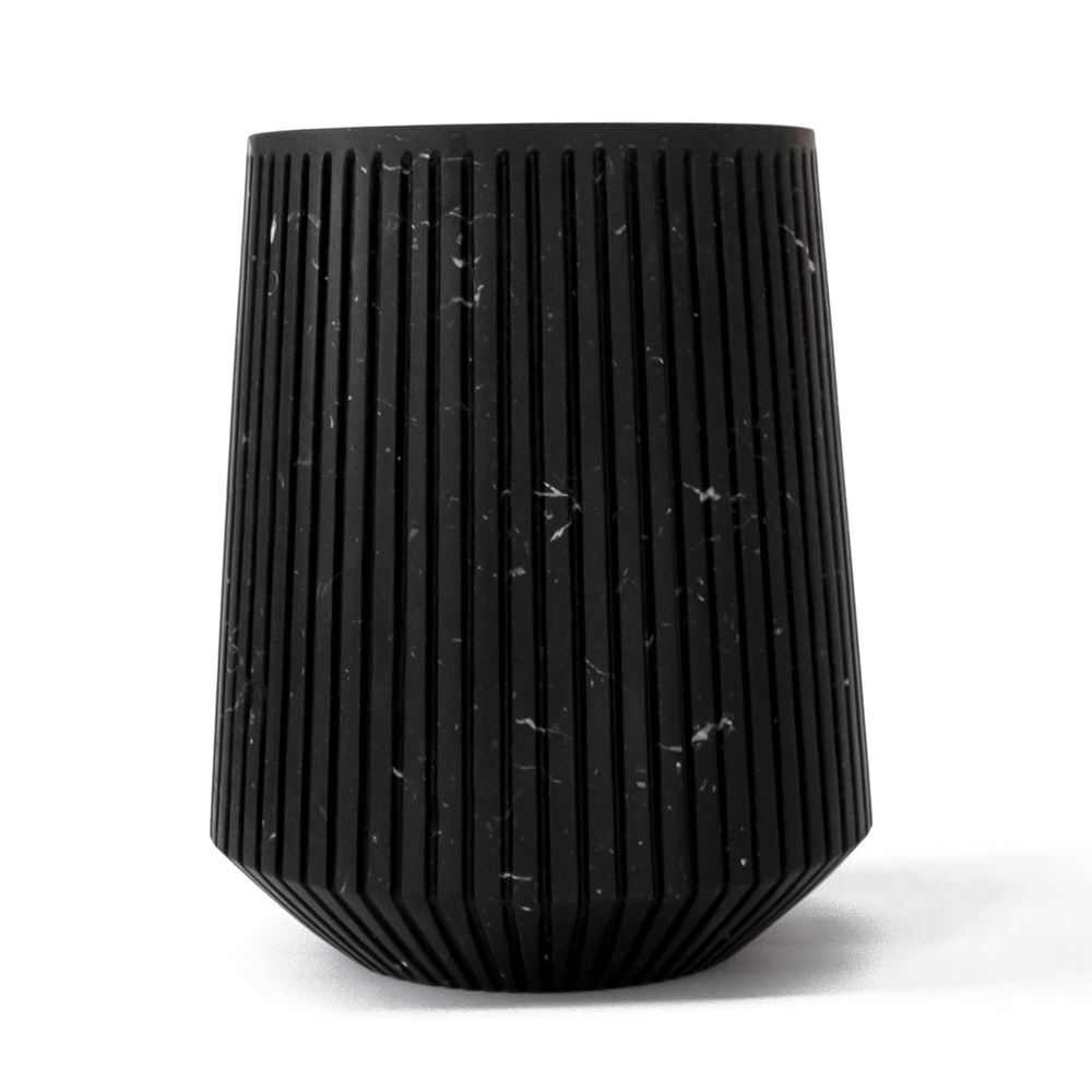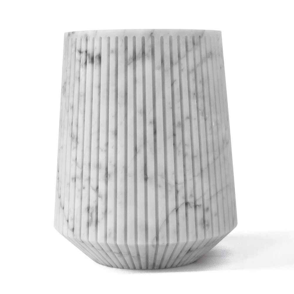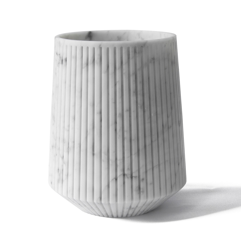 Vaso grande feito à mão em mármore branco ou preto com listras de design made in Italy.