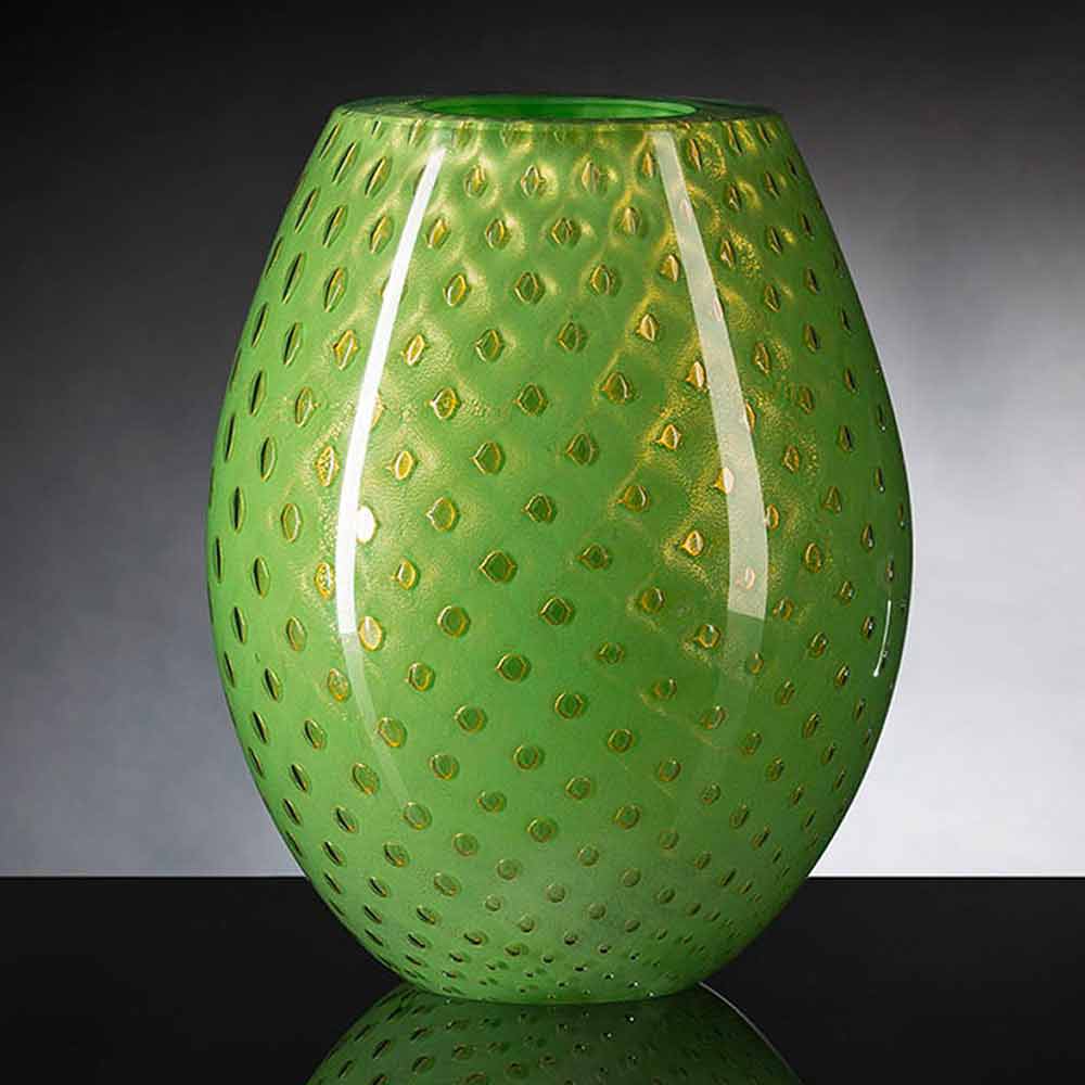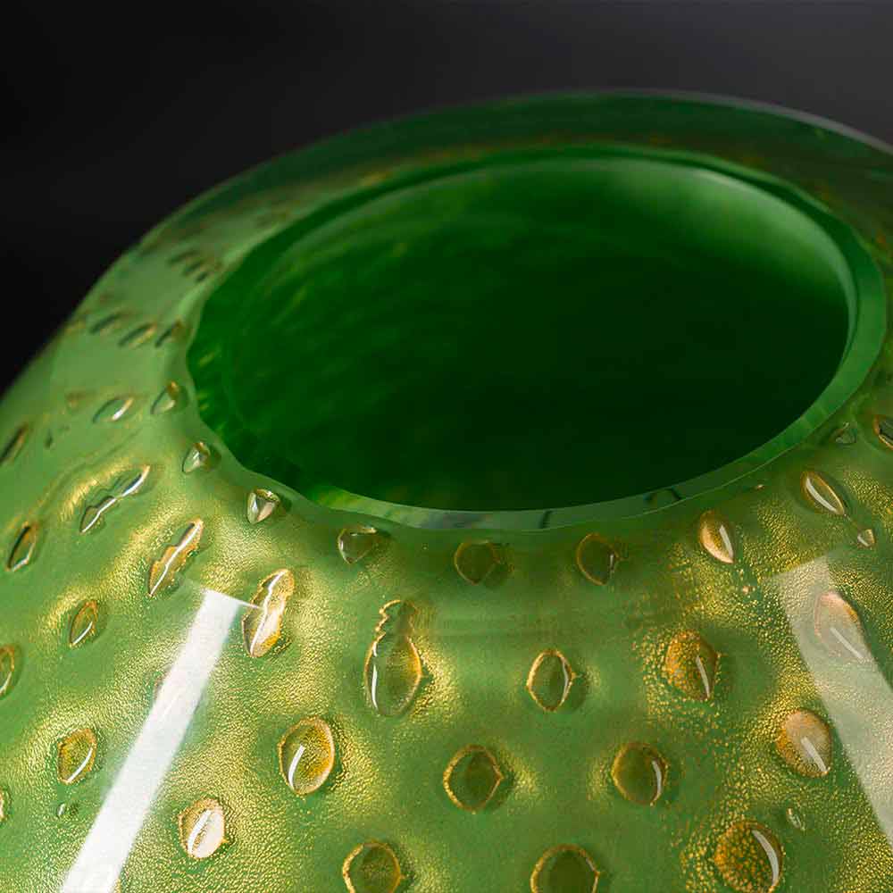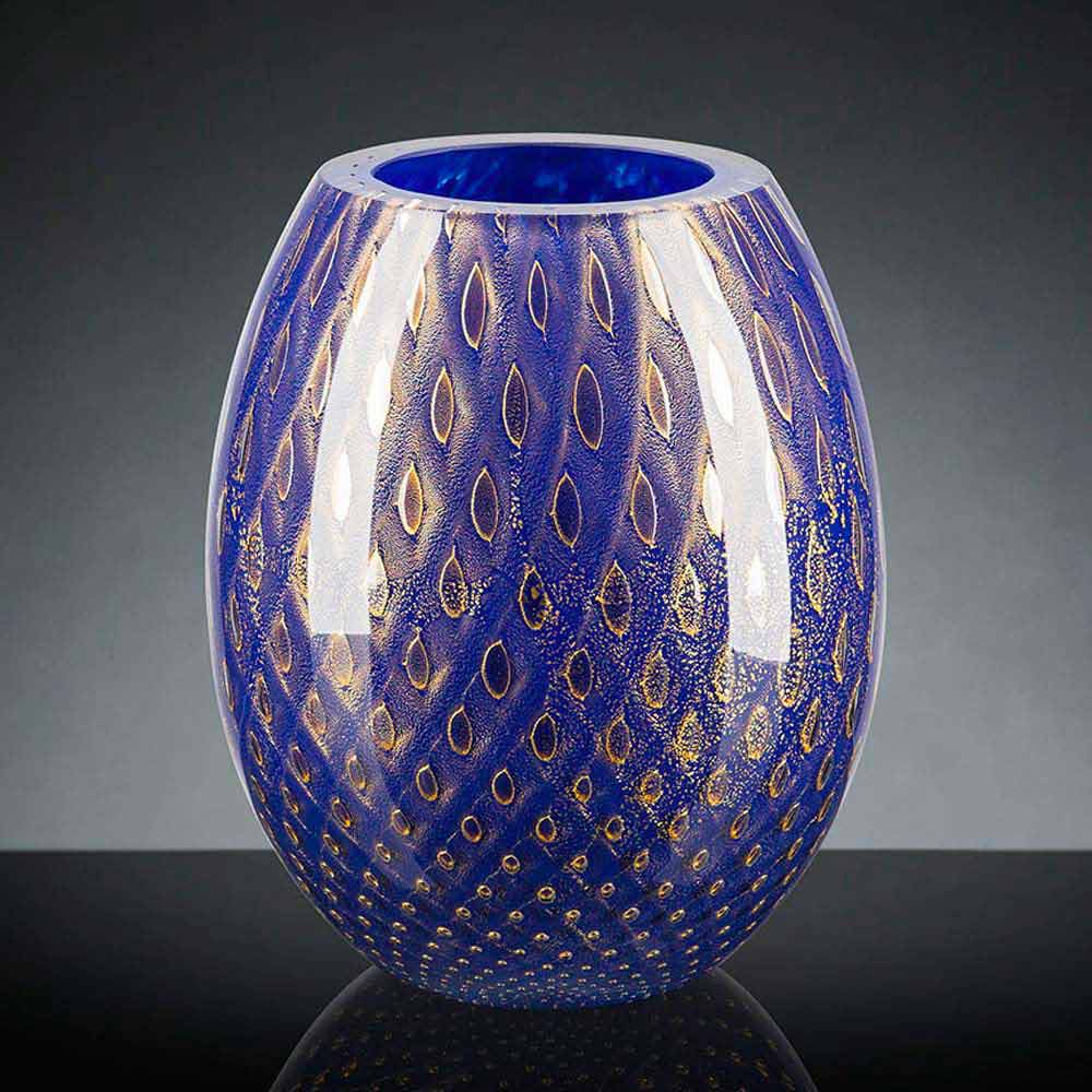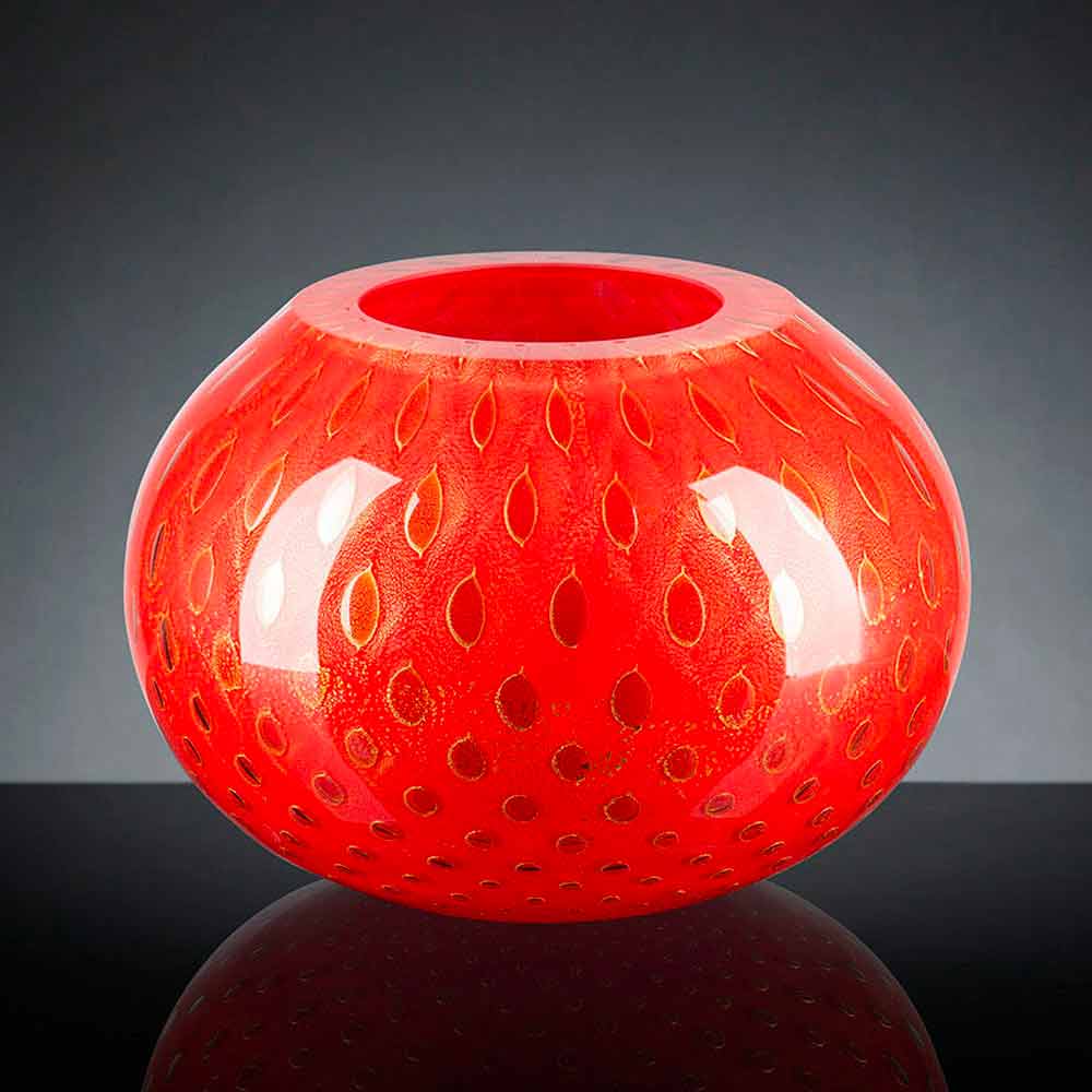 Vaso interior em vidro soprado colorido Murano fabricado na Itália.