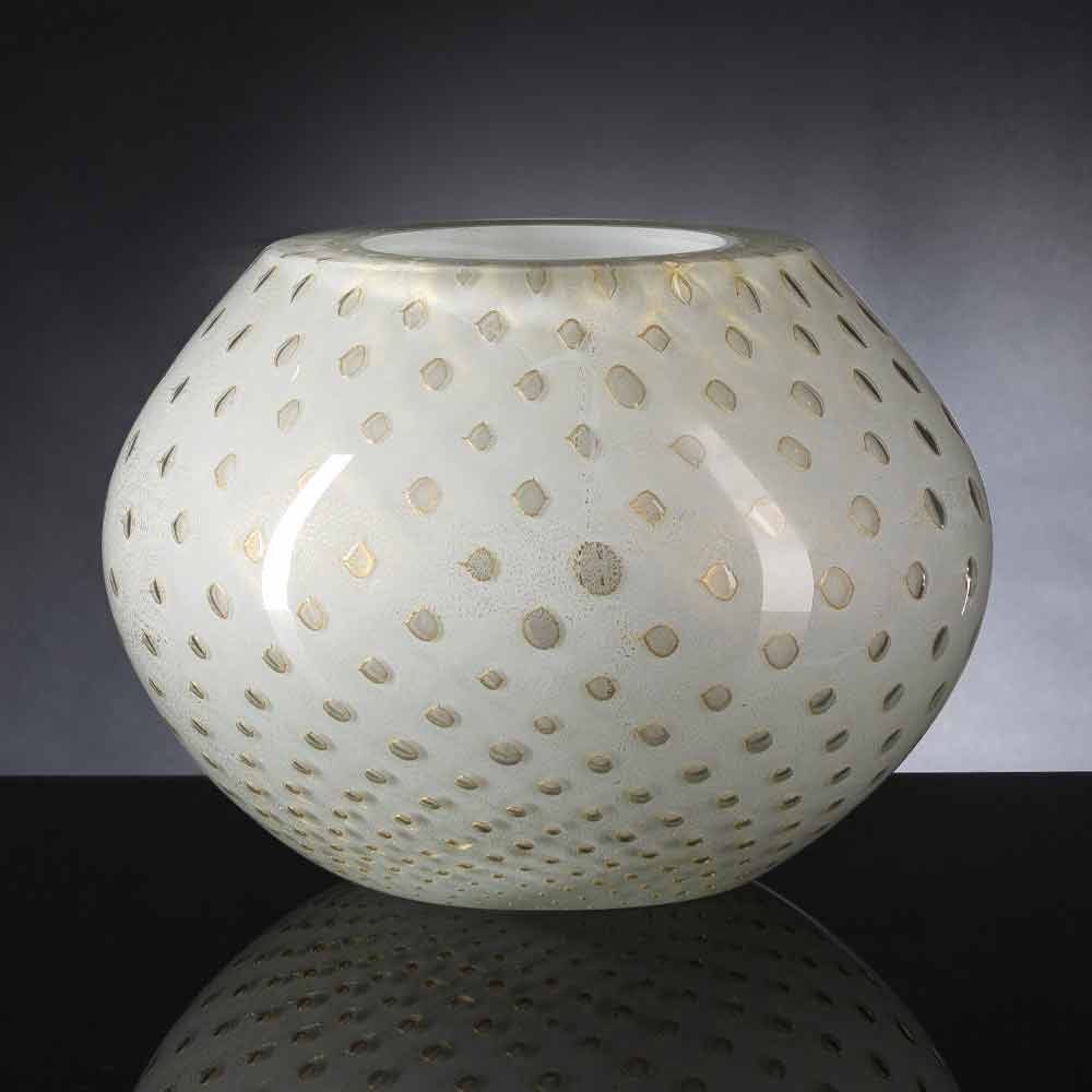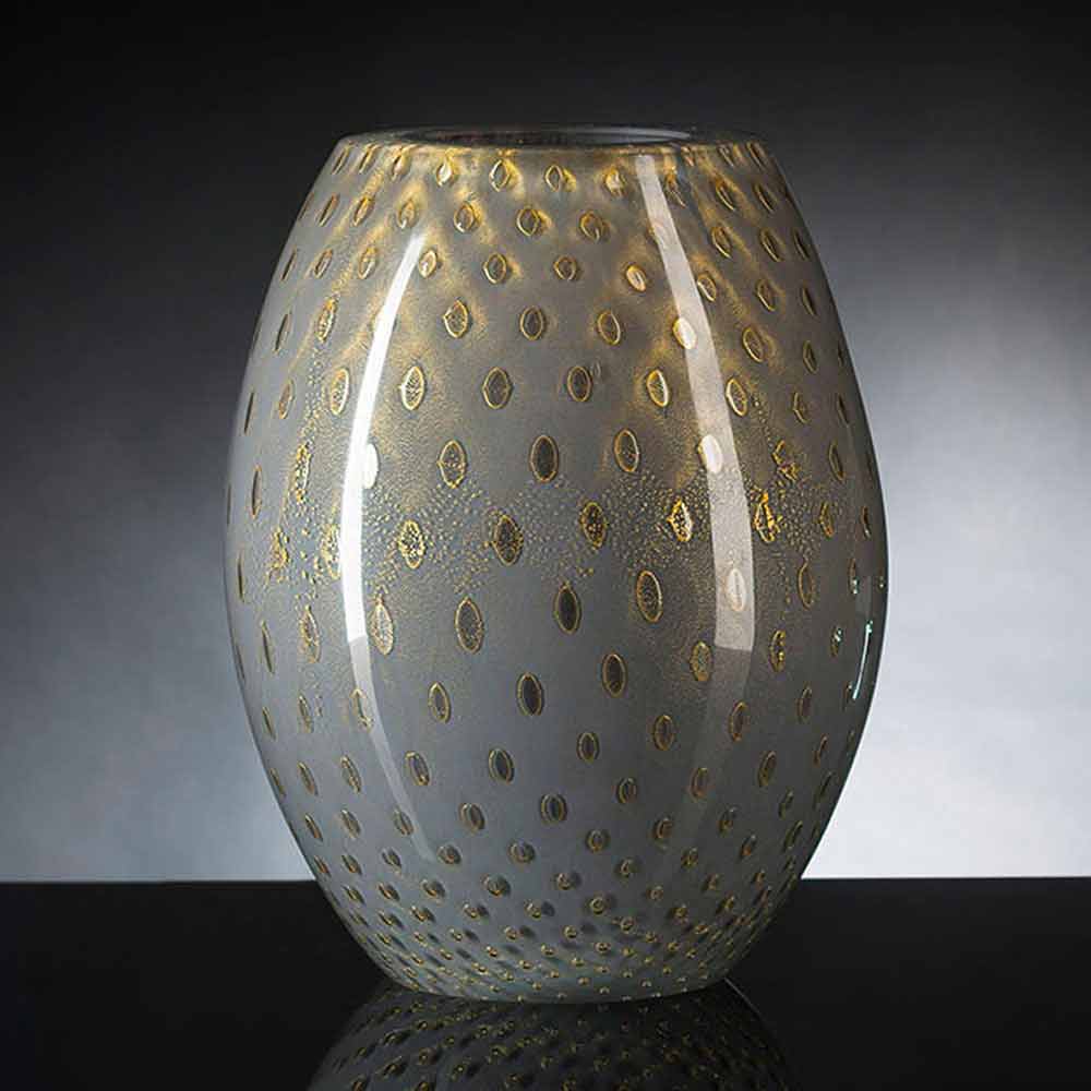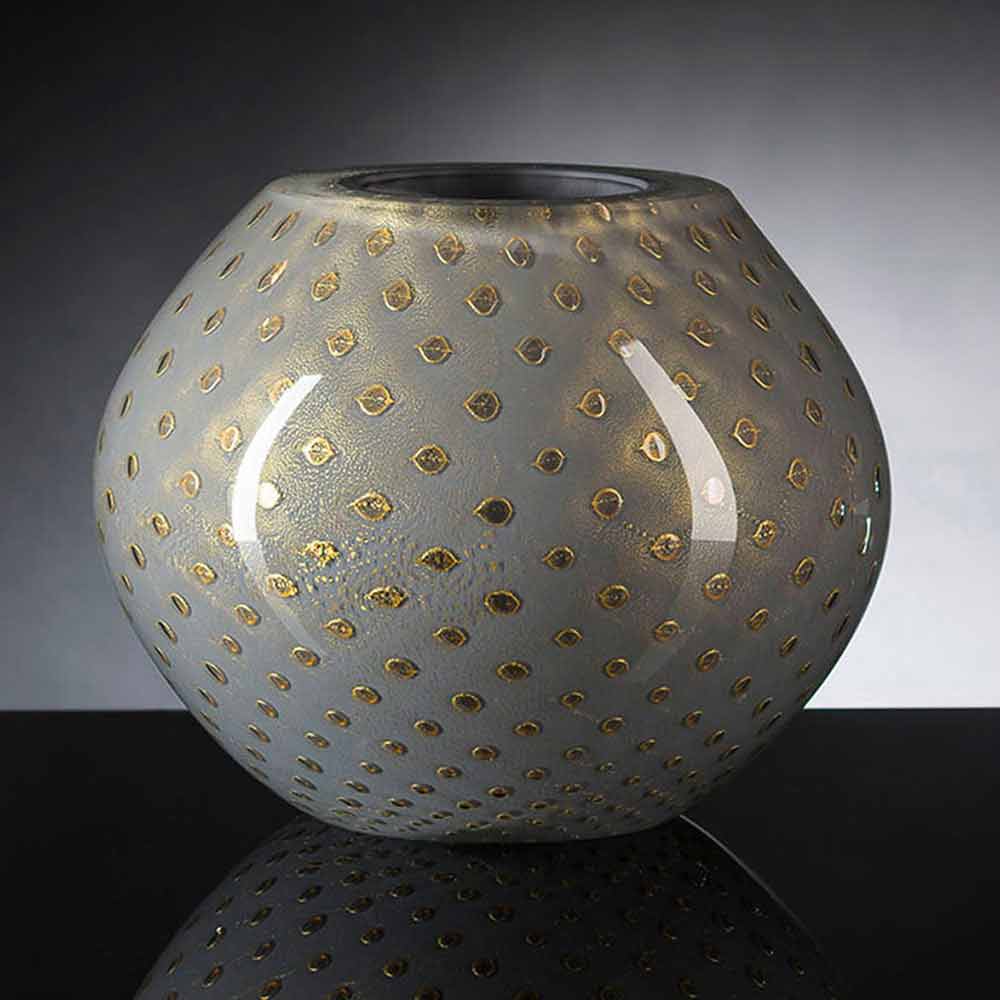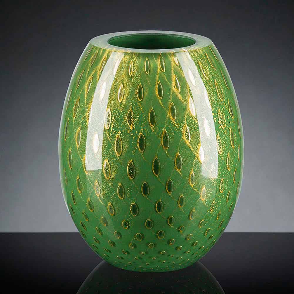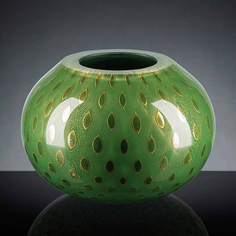 Vaso interior em vidro soprado colorido Murano fabricado na Itália.