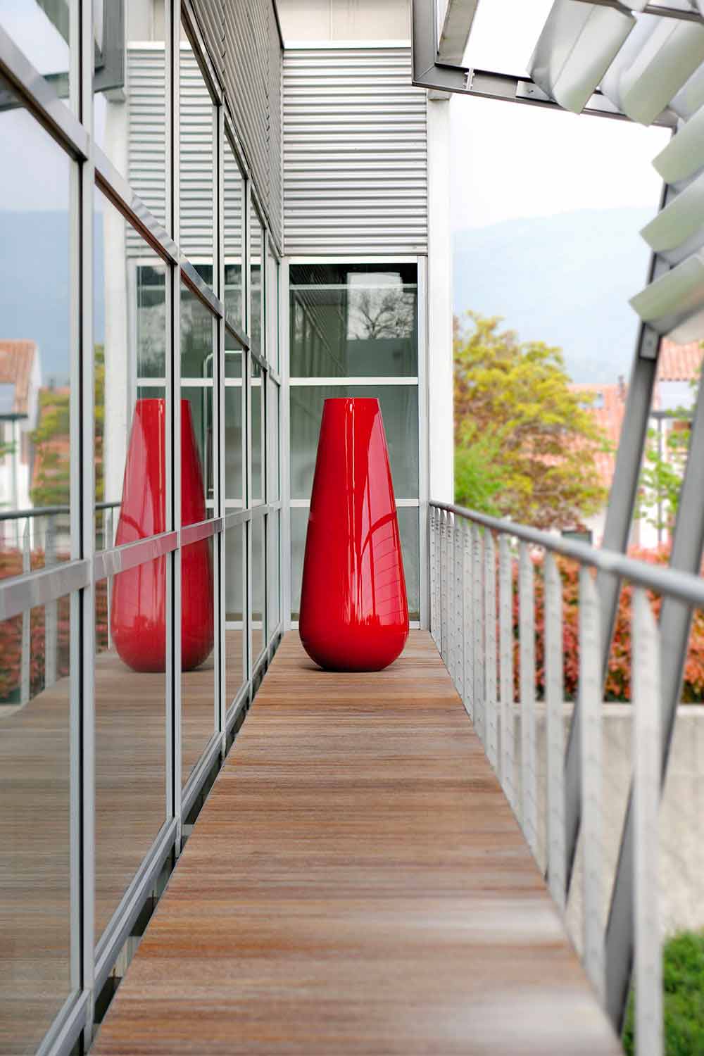 polietileno , está disponível na versão opaca caracterizada pela excelente resistência aos choques e ao calor, na versão lacada resistente e brilhante que permite criar jogos de luz e reflexos que se tornam protagonistas no ambiente ou, finalmente, na versão metálica. Ideal para plantas de médio porte com desenvolvimento vertical.