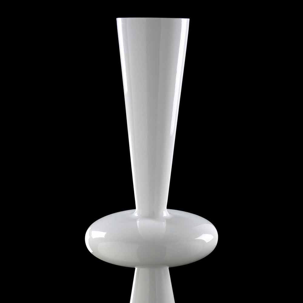 Vaso decorativo alto em cerâmica branca artesanal Made in Italy.