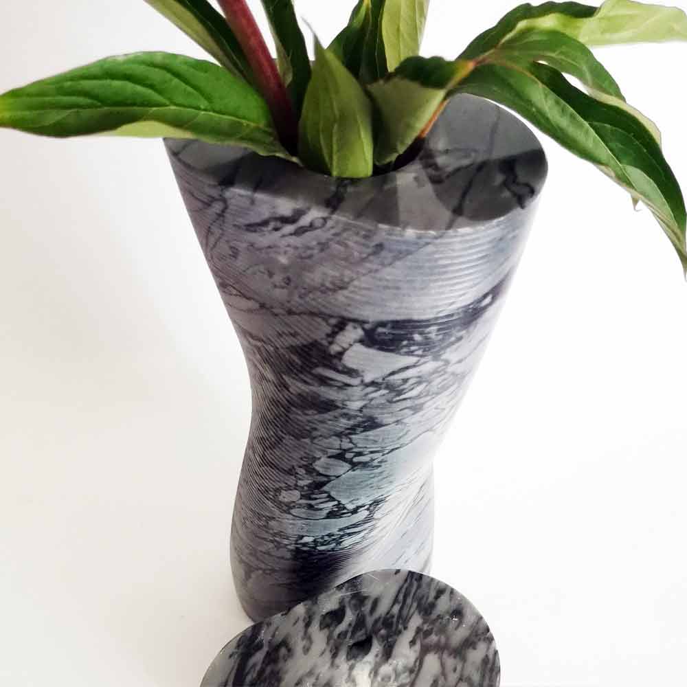 mármore florido Bardiglio , um material compacto de cor cinza claro, caracterizado por veios cinza antracíticos. Ideal para ser usado sozinho como objeto de decoração ou até mesmo com flores que podem criar um colorido maravilhoso em ambientes com móveis modernos e elegantes. A combinação de materiais e técnicas utilizadas aliada ao maravilhoso trabalho dos artesãos permitem obter um produto final de alta qualidade com atenção aos detalhes e perfeito para ambientes de gosto contemporâneo e sofisticado.
