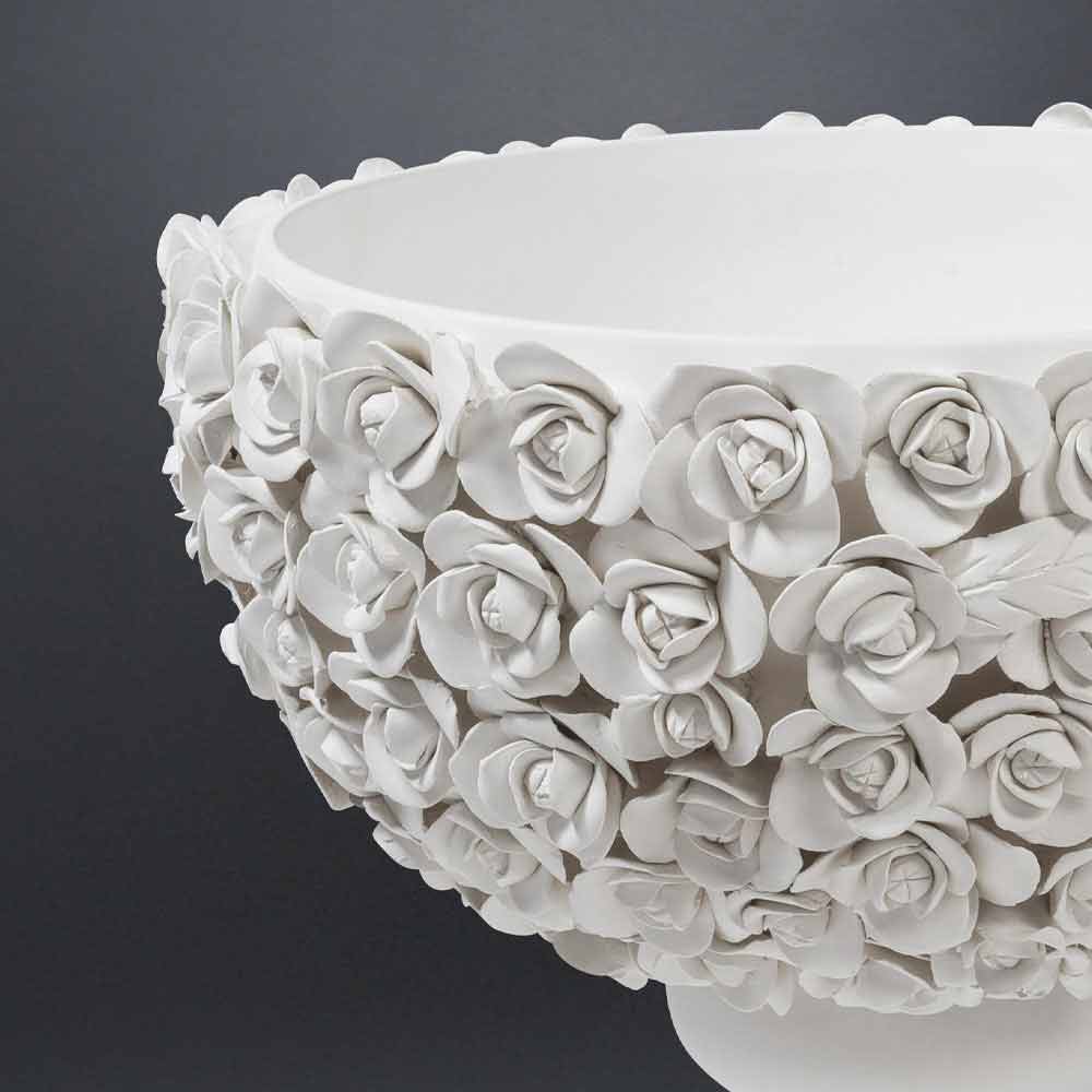 Vaso de interior em cerâmica branca mate artesanal em Itália. Elegância e estilo clássico são as principais características deste maravilhoso elemento decorativo cuja figura é sublinhada por linhas suaves e sinuosas para um desenho que faz lembrar esculturas antigas típicas da arte italiana. Para enriquecer a estética é o tratamento floral particular que aumenta ainda mais o lado refinado do produto. A utilização da cerâmica e do trabalho artesanal sublinham o seu valor e qualidade para um resultado que se adapta a qualquer situação estilística. Uma estética ideal para os mais variados ambientes, desde artigos de decoração até hotéis, restaurantes, áreas comerciais, spas mas também como cenário para eventos e casamentos.