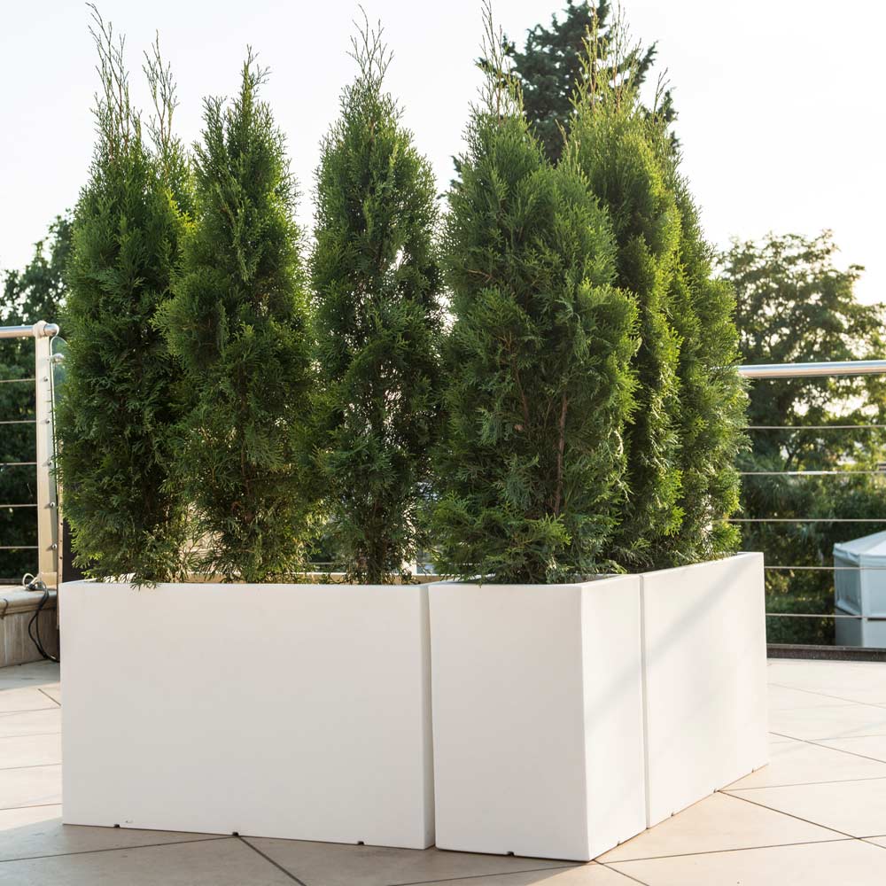 Vaso ou divisória para jardins , terraços e ambientes externos. Robusta e espaçosa, é ideal para dividir espaços com elegância. Feito de polietileno, é