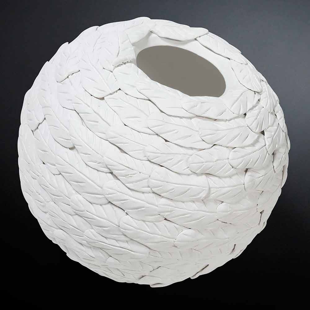 Vaso decorativo para interiores com formato esférico em cerâmica branca mate, feito à mão na Itália. Uma ideia que surge de um design clássico e particularmente elegante enriquecido pelo maravilhoso processamento com textura de folha que cobre toda a estrutura do vaso, valorizando e unicamente para um resultado exclusivo e requintado . O uso de cerâmica e artesanato sublinham o seu valor e qualidade tornando-o capaz de se adaptar a qualquer situação estilística. Uma estética ideal para os mais variados ambientes, desde artigos de decoração até hotéis, restaurantes, áreas comerciais, spas mas também como cenário para eventos e casamentos.
