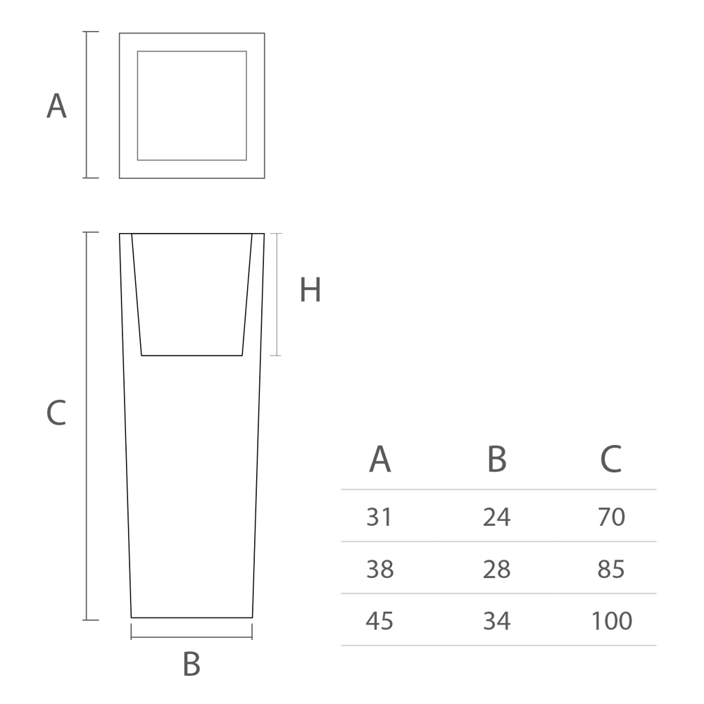 Produzido na Itália, este vaso para exterior é feito de polietileno colorido , material de alta qualidade útil para garantir ao produto máxima resistência e grande estabilidade . Este elemento de mobiliário caracteriza-se por um design minimalista e original , feito de linhas essenciais e uma forma quadrada que se alarga ligeiramente para o exterior como que para acolher plantas e flores com calor e elegância.