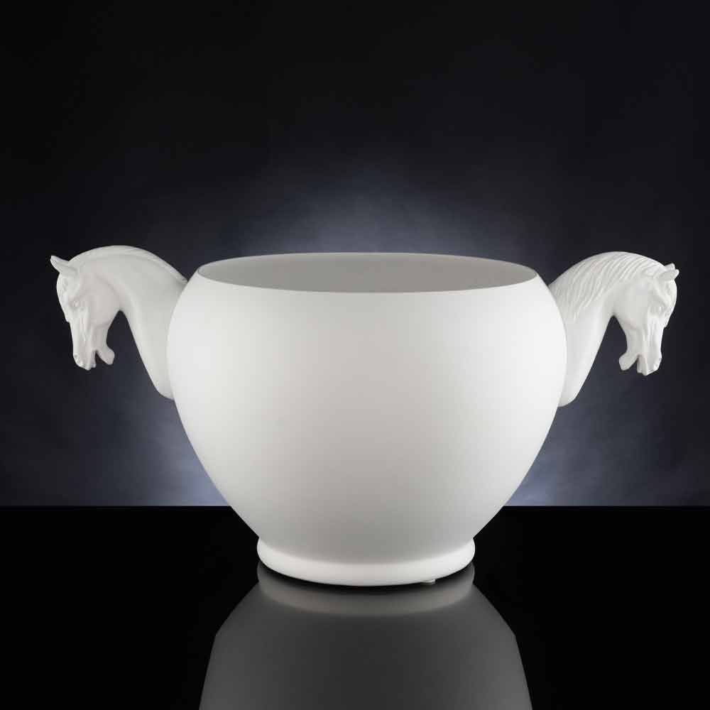 artesãos que são especialistas no setor há gerações. Uma estética única caracterizada por linhas e formas simples enriquecidas pelos dois detalhes laterais em forma de cavalo que realçam a sua originalidade e a tornam uma solução perfeita tanto para ambientes de estilo clássico como para espaços mais modernos onde se cria um maravilhoso jogo de contrastes entre diferentes estilos graças também aos belos acabamentos propostos que oferecem uma solução sóbria e versátil e uma ideia mais excêntrica com um forte impacto cenográfico. A utilização de cerâmica e