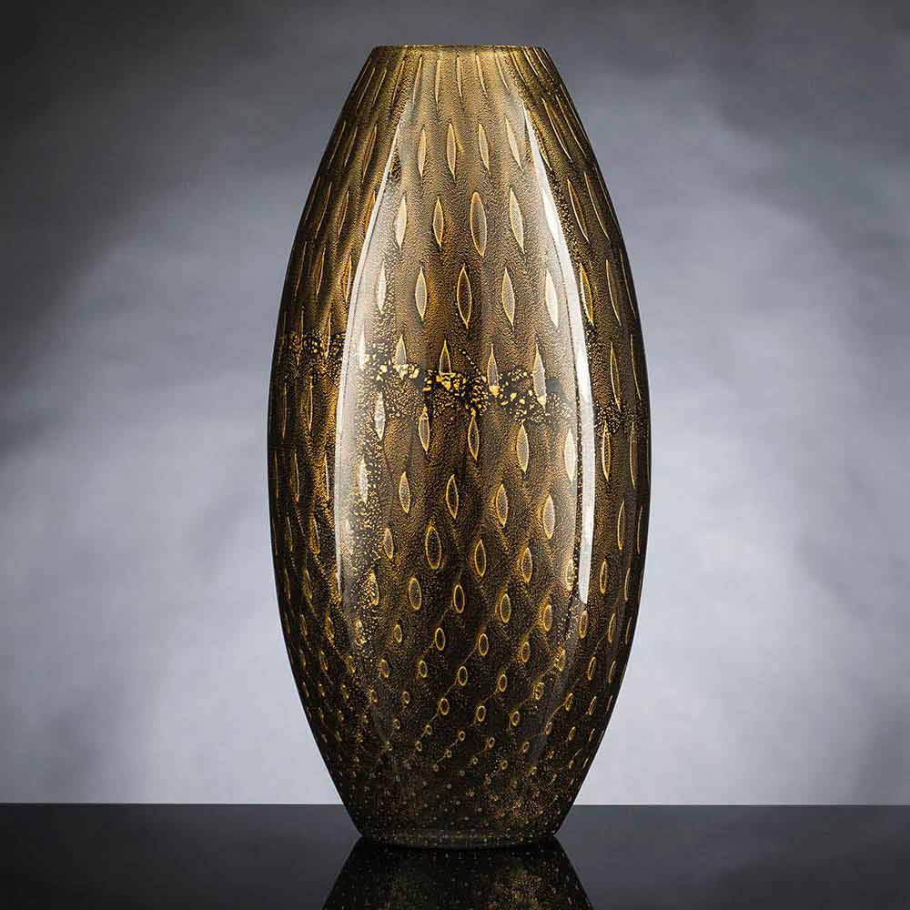 Vaso decorativo moderno em vidro soprado de Murano colorido Made in Italy.