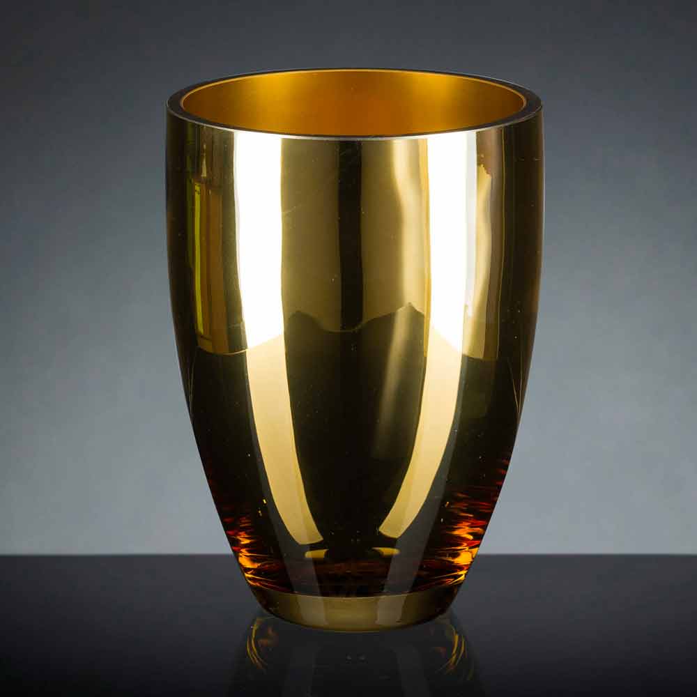 Vaso de interior em vidro soprado com acabamento em ouro 24k polido feito à mão na Itália por mestres vidreiros que são especialistas no setor há gerações. Sua peculiaridade é representada pela produção artesanal que aumenta seu valor e valor para dar vida a um resultado exclusivo e de alta qualidade . A cor particular escolhida torna-o um complemento extremamente elegante, capaz de enriquecer com personalidade o mobiliário envolvente. Um projeto ideal para os mais variados ambientes, desde decoração até hotéis, restaurantes, áreas comerciais, spas, mas também como cenário para eventos e casamentos.