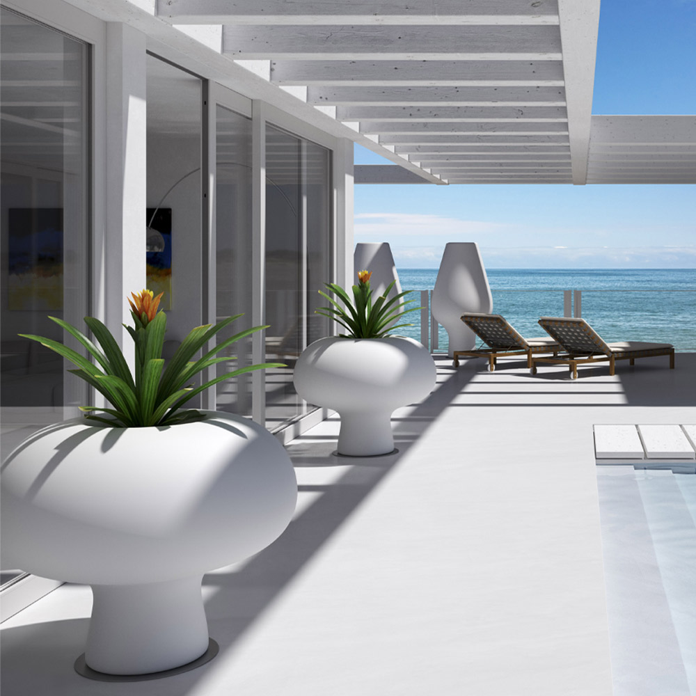 Vaso luminoso para exterior em polietileno opaco com LED Made in Italy.