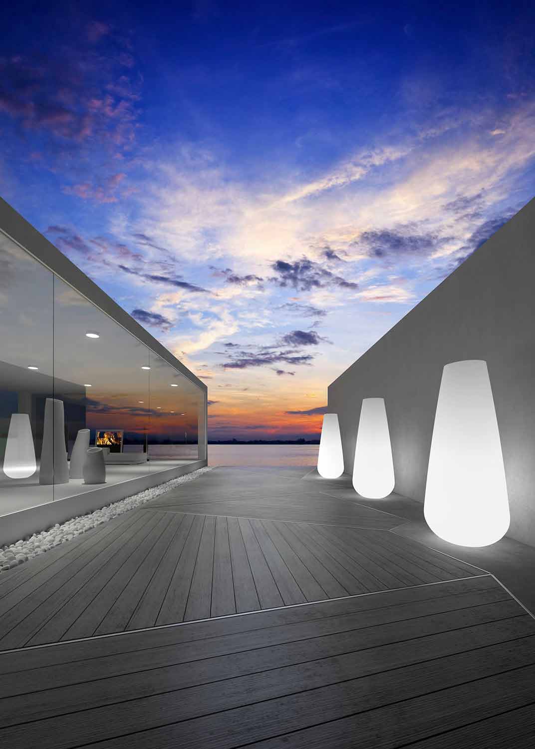 Este vaso decorativo caracteriza-se pela sua presença imponente e pela luz LED que o torna adequado para criar ambientes de luz suave, ajudando a criar soluções de mobiliário de grande impacto.