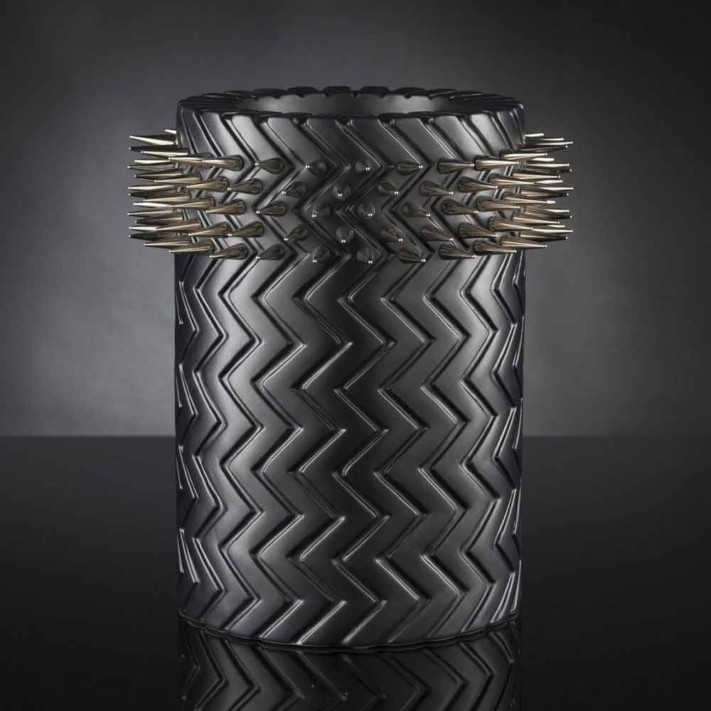 Vaso decorativo em cerâmica preta fosca com pregos de aço feito através de um artesanato Made in Italy . Uma estética imponente com uma forte personalidade contemporânea sublinhada pela utilização de dois materiais diferentes conjugados para criar uma ideia inovadora e revolucionária ideal para quem gosta de decorar os seus espaços de forma única e com carácter. A produção artesanal representa um de seus pontos fortes, pois valoriza e valoriza a qualidade do produto, dando vida a um resultado exclusivo e requintado . Um estilo ideal para os mais variados ambientes, desde artigos de decoração até hotéis, restaurantes, áreas comerciais, spas mas também como cenário para eventos e casamentos.