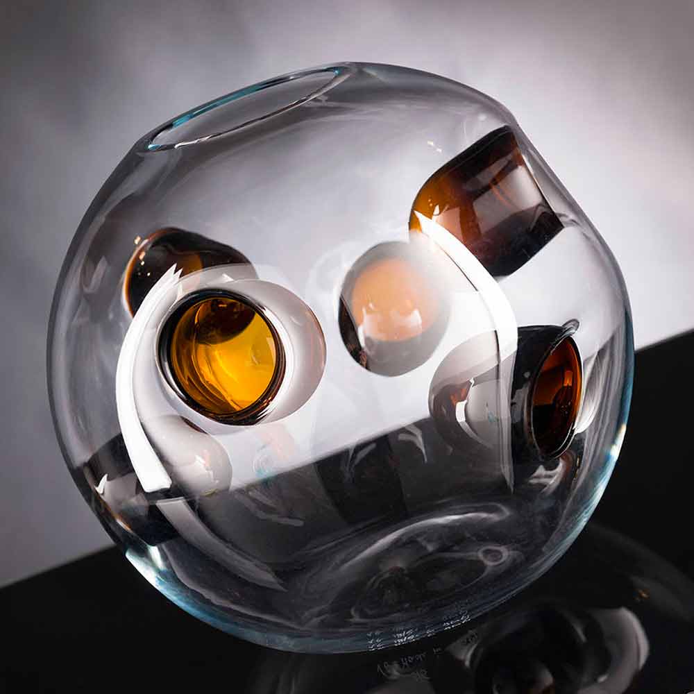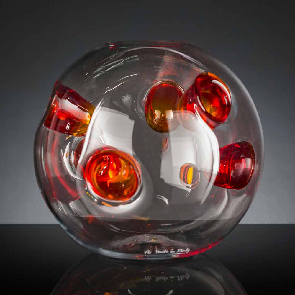 Vaso de vidro soprado de Murano com detalhes coloridos fabricado na Itália.
