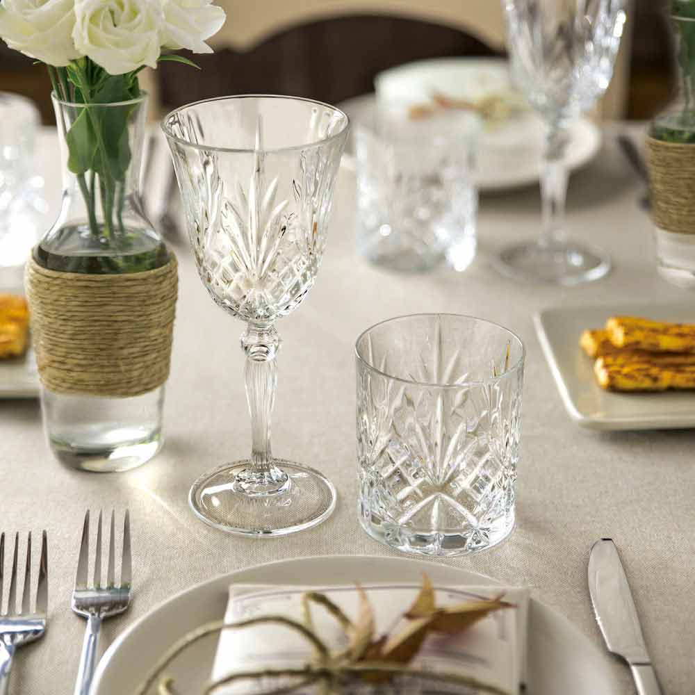 antiquados copos duplos ideais para destilados e coquetéis com gelo, mas também válidos para água, refrigerantes ou licores, com um