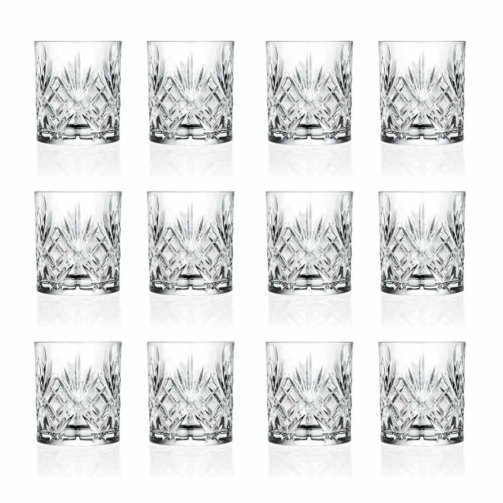 12 Copos de dof vintage de estilo antigo em cristal ecológico de alta qualidade 100% made in Italy.