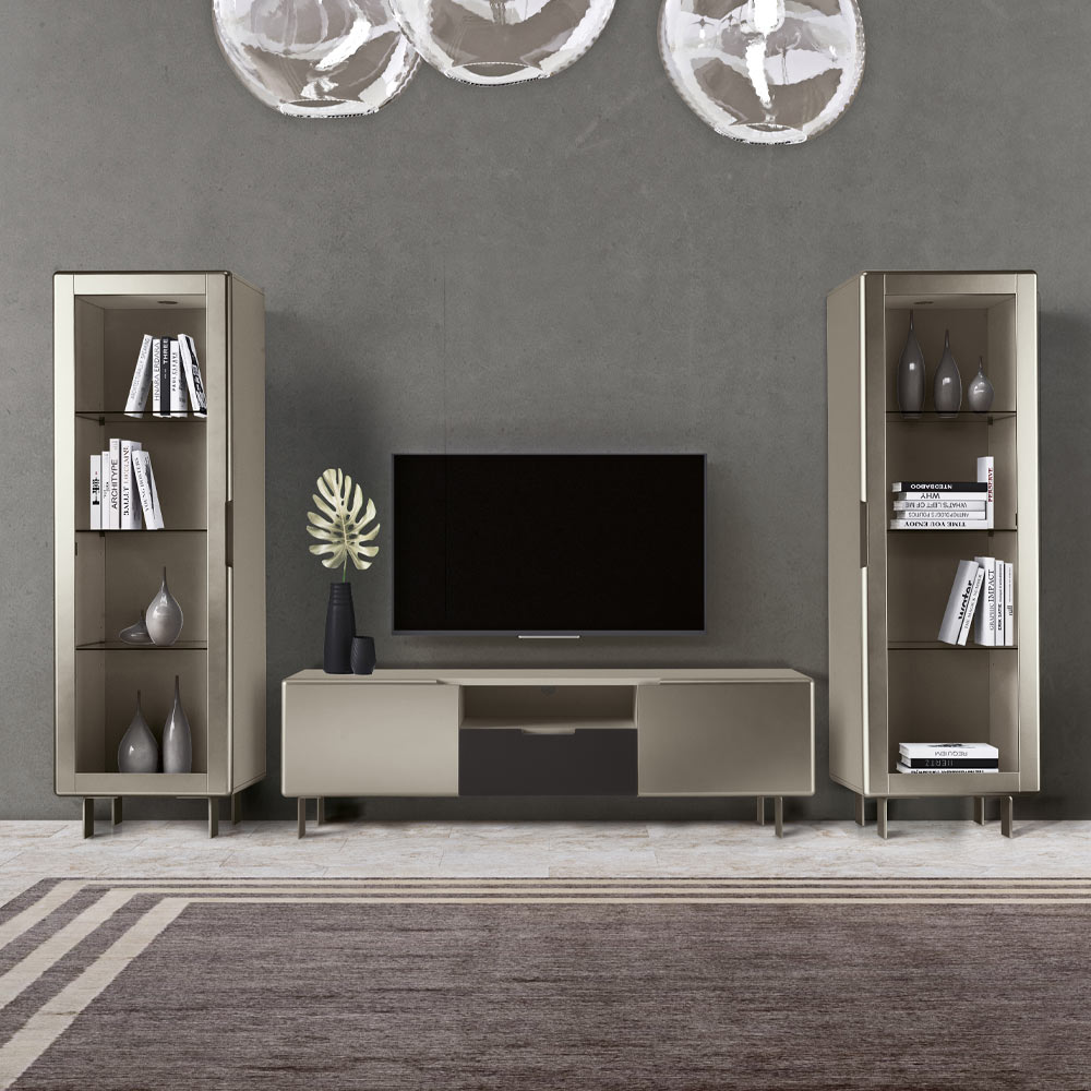 Vitrine de sala em MDF com acabamento níquel Fabricado na Itália