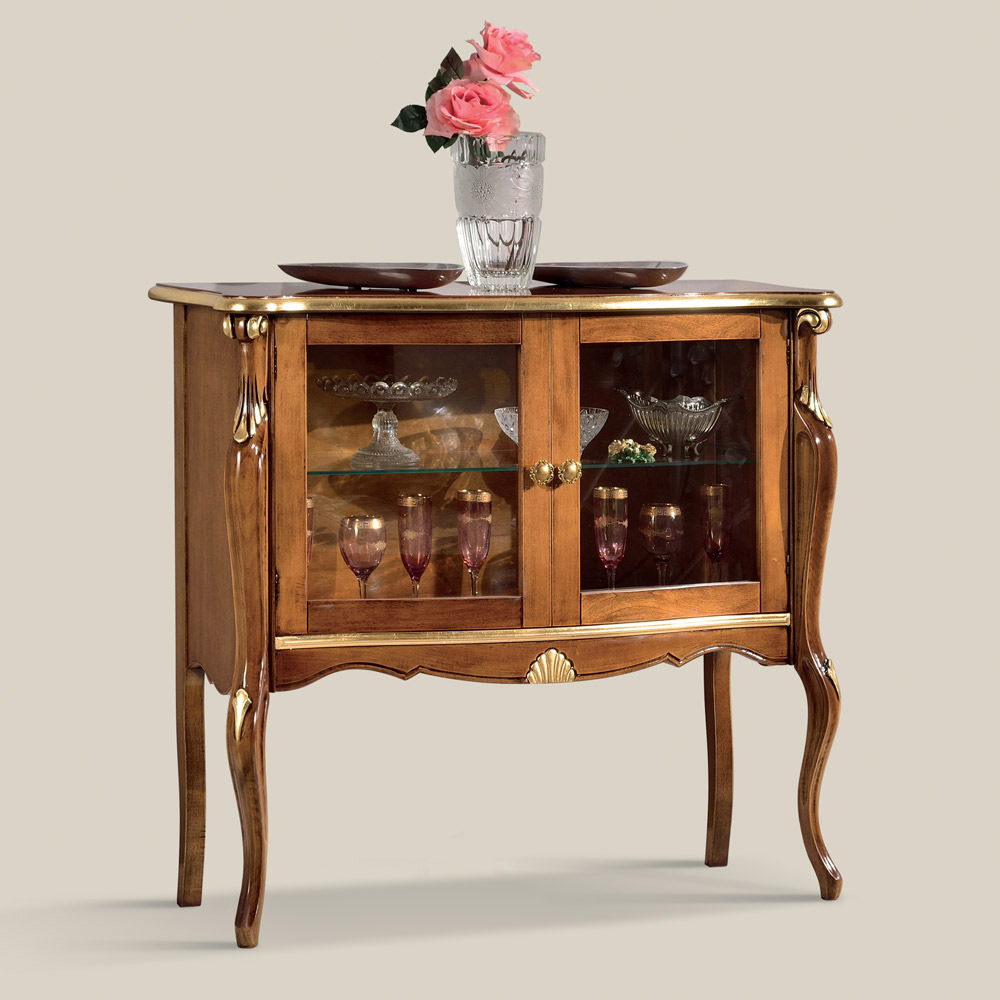 Vitrine de sala de estar com 2 portas em nogueira ou madeira branca Made in Italy.