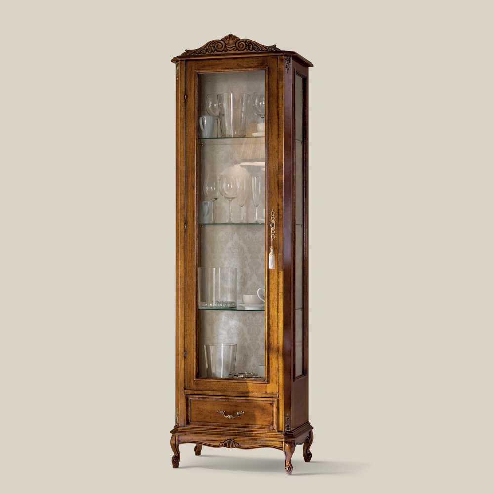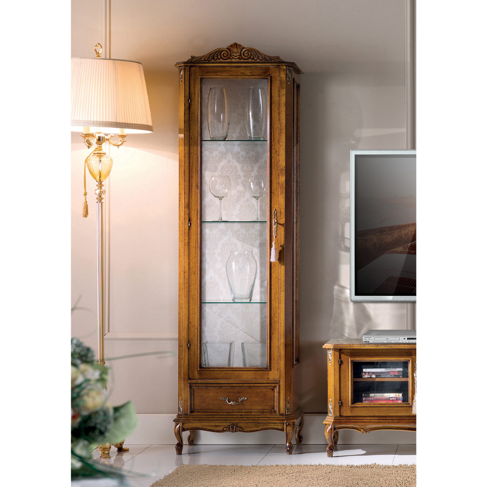 Vitrina clássica para sala em madeira de nogueira com 1 porta Fabricado na Itália.