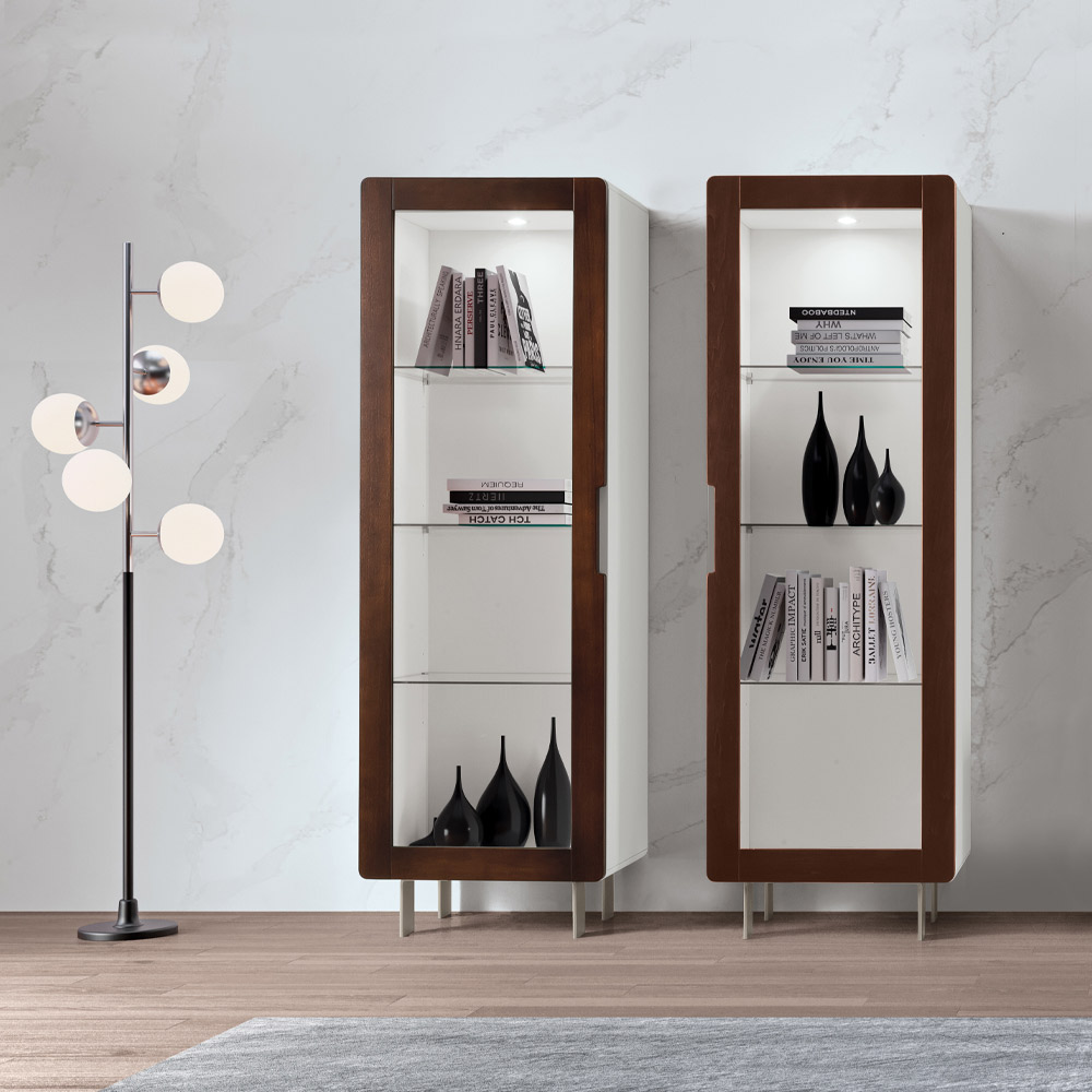 prateleiras internas de vidro. O produto faz parte da nova linha de produtos modernos feitos com respeito à natureza. Esta elegante vitrine é caracterizada pela