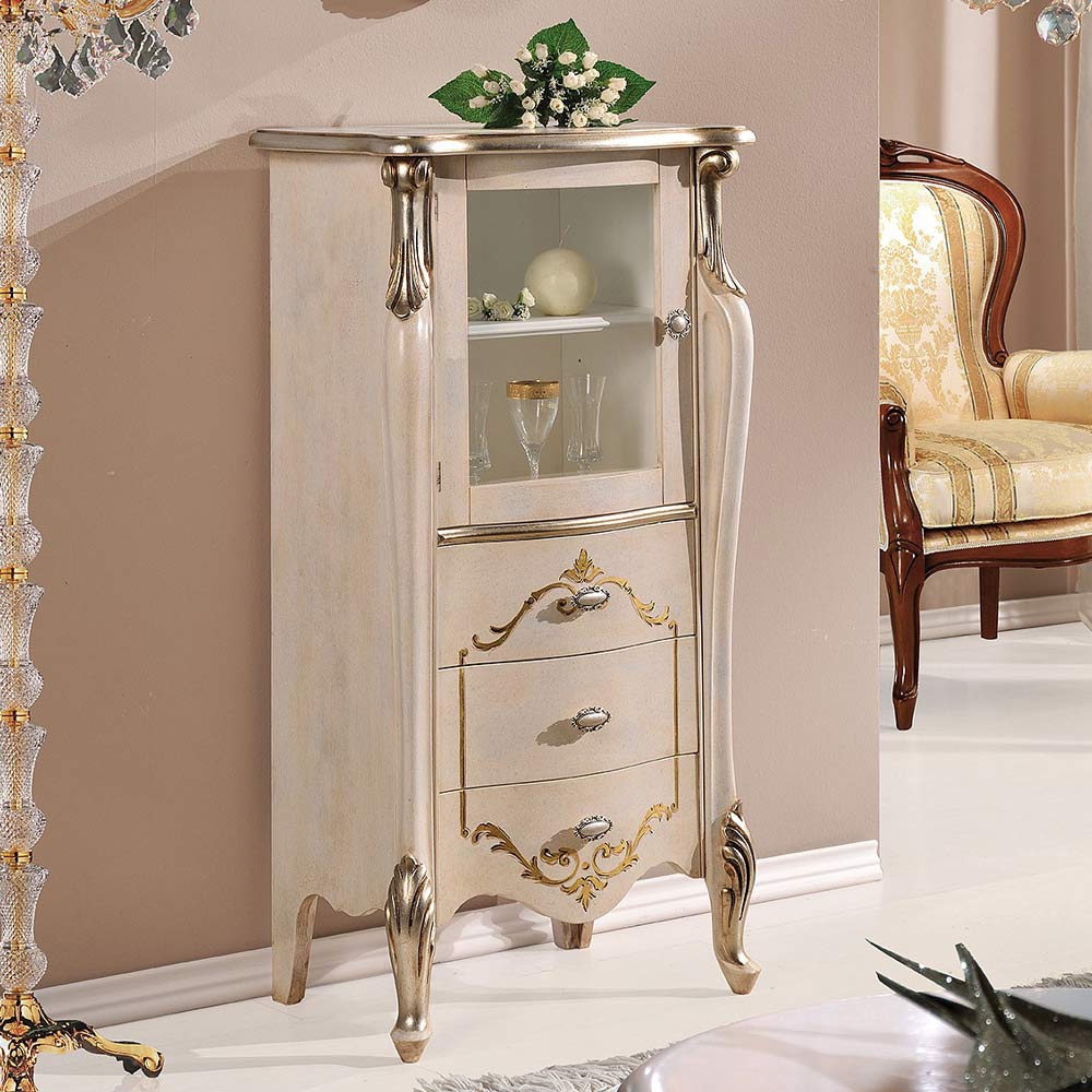 Vitrine de sala de estar com porta de vidro e 3 gavetas Made in Italy.