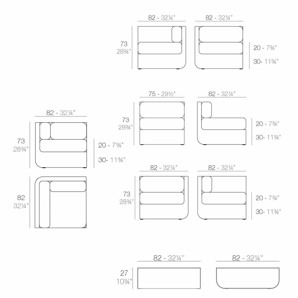 - 1 módulo de canto L81,5 x P81,5 x H72 cm;